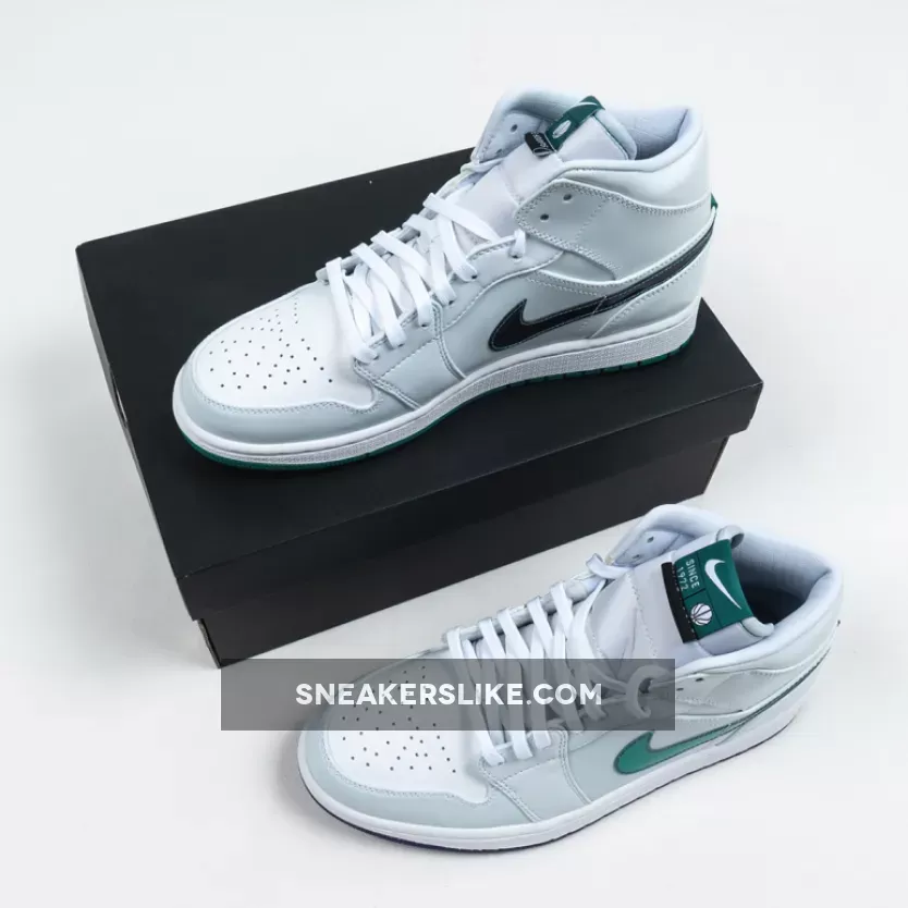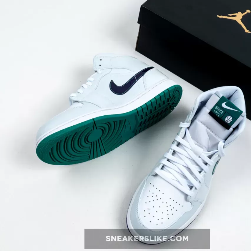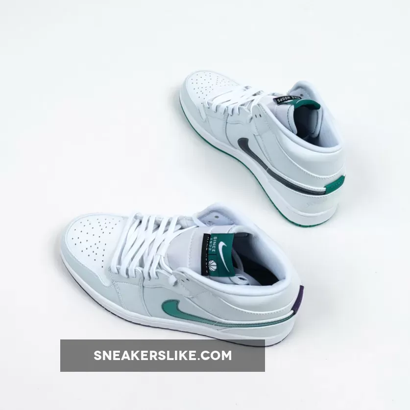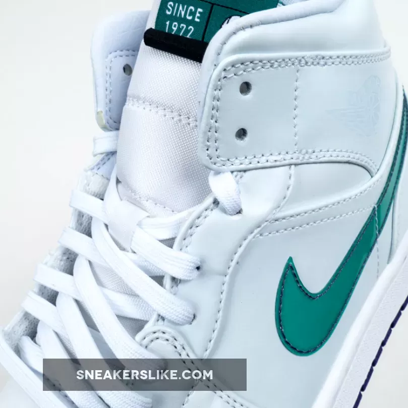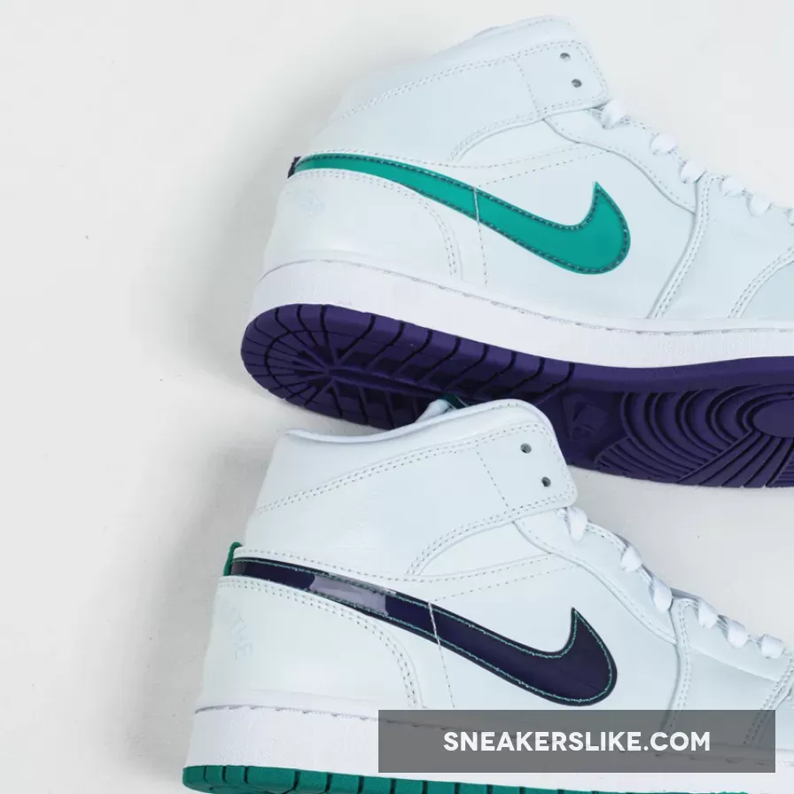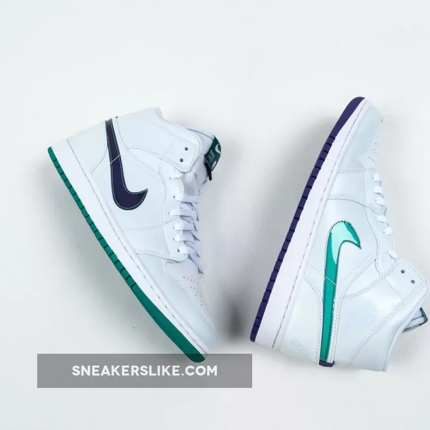 Dubbed “Nike Hoops,” this pair makes use of tumbled and flat white leather predominately seen on the upper that’s offset by mismatched green and purple Swoosh branding on the sides and on the outsole. Instead of the traditional Jumpman branding, the shoe’s standout feature is the new “Nike Hoops” tongue tag that pays homage to Nike Basketball’s inception in 1972.