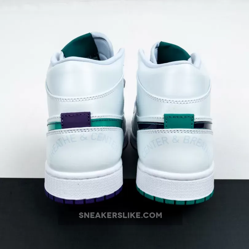 Launching as part of a three-piece Pregame Pack highlighting how athletes prepare for competition, the Luka Doncic x Air Jordan 1 Mid SE ‘Mindfulness’ draws inspiration from the NBA star’s tranquil headspace in the locker room. The mid-top’s pristine leather build is accented with mismatched green and violet coloring on the signature Swoosh and rubber outsole. ‘Breathe and Center’ is inscribed on the heel of the left shoe, ‘Center and Breathe’ on the right.
