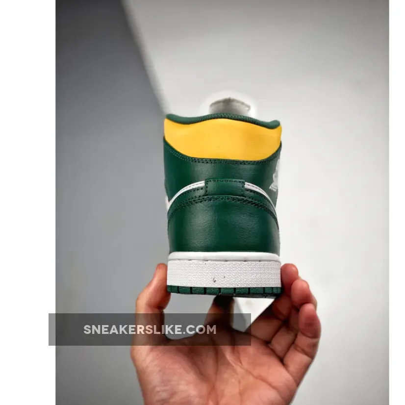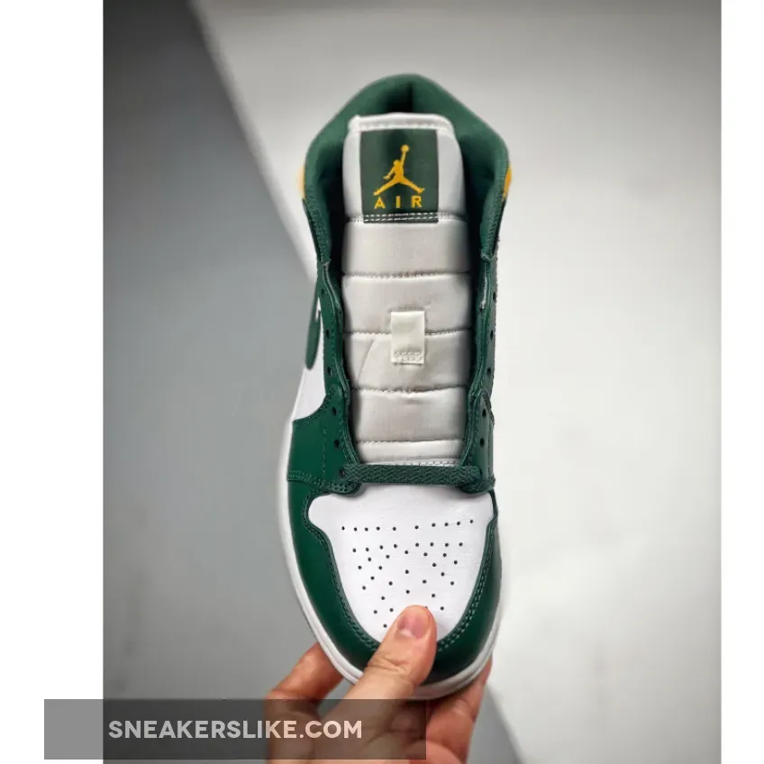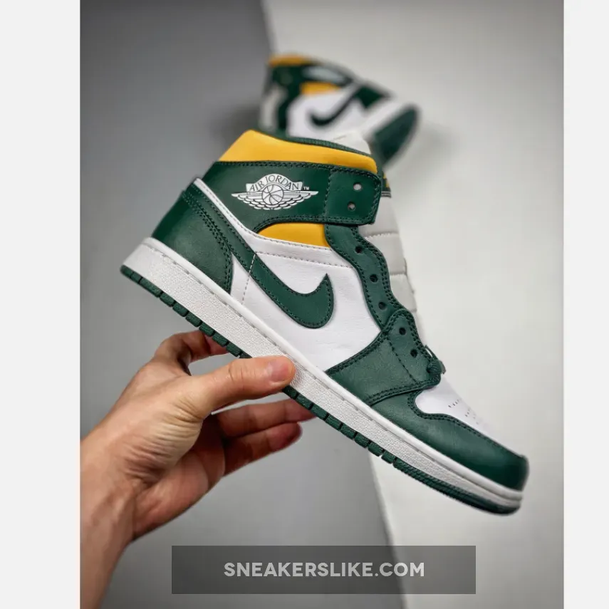 Clean & striking! ??? Premium leather & vibrant color scheme make these Air Jordan 1 Mids a must-cop! ? #AJ1Mid #SeattleSupersonics #SneakerGoals