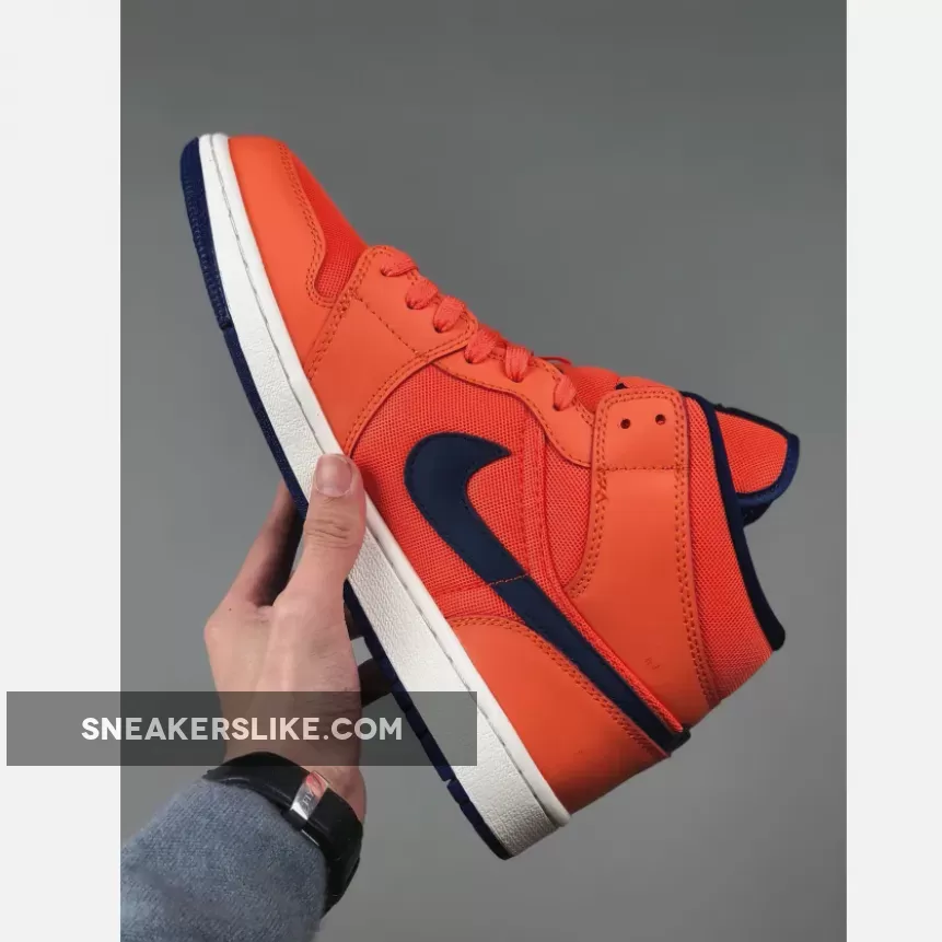 This iteration of the mid-top Air Jordan 1 sports a full Turf Orange upper constructed in leather and mesh.
