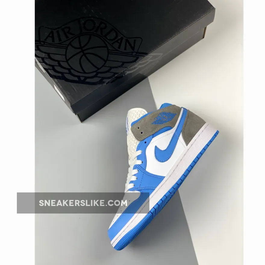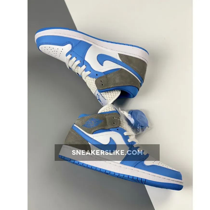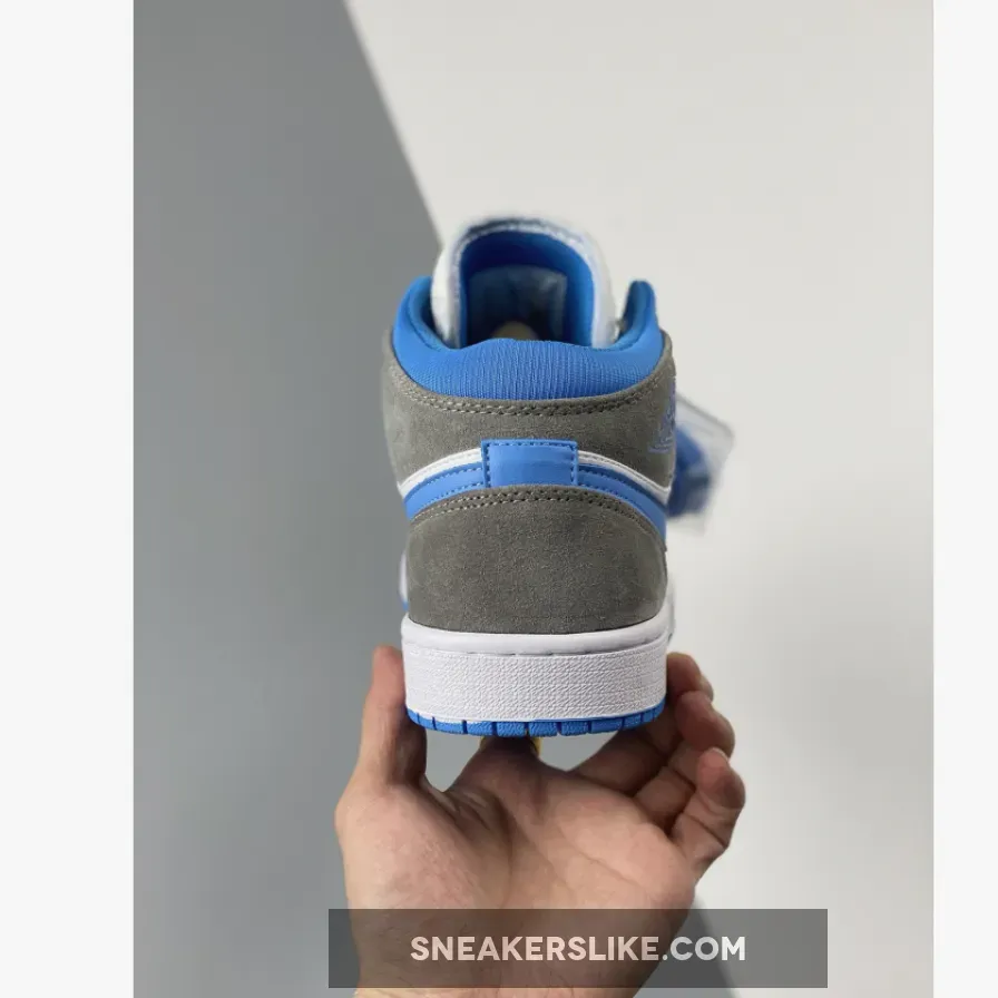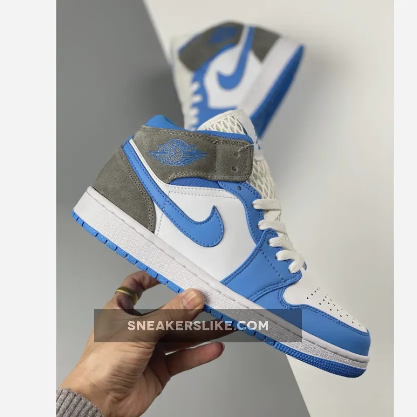 We thought it wasn’t possible to shake up the UNC-themed colourway any more, but Nike has thought of a way to do just that. Introducing the Air Jordan 1 Mid University Blue Grey. This iteration shows off the Carolina Blue-themed colouring that we’re used to seeing on a University Blue sneaker. This Air Jordan 1 Mid has a blue outsole, white midsole, and then matching panelling on the upper. The toe cap, eyelets, Swooshes and ankle are painted in blue, with the ankle coming in a canvas material rather than the leather, whilst the heel and Wings panelling come in a grey suede. The iteration is done up with a white lace unit, with Michael Jordan’s Jumpman logo sitting at the top of the tongue.