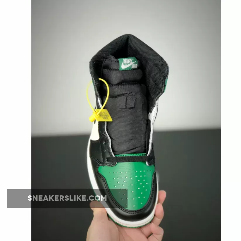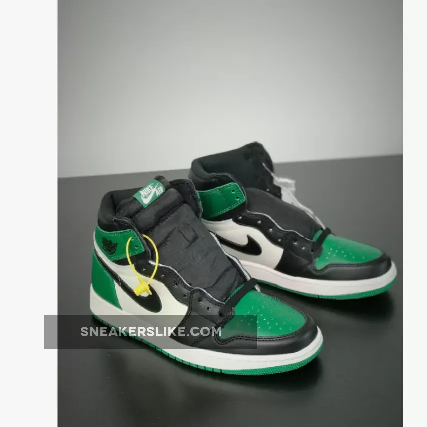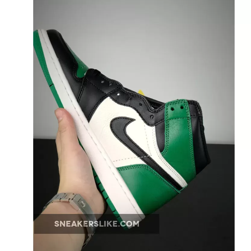 Dressed in a Pine Green, Sail and Black color scheme. This Air Jordan 1 features Pine Green on the toe box, tongue label, heel and rubber outsole. Black covers the tongue, laces, Wings logo, Nike Swoosh and overlay on the toe. Finishing off the design is White on the mid-section as well as on the midsole.