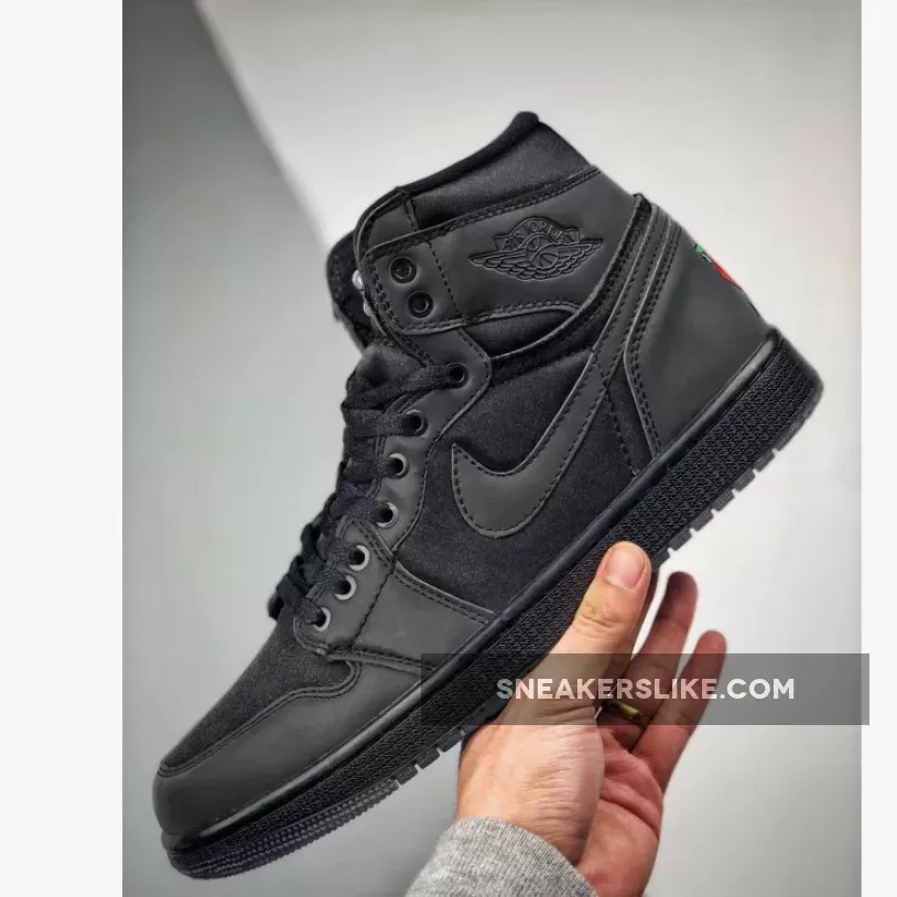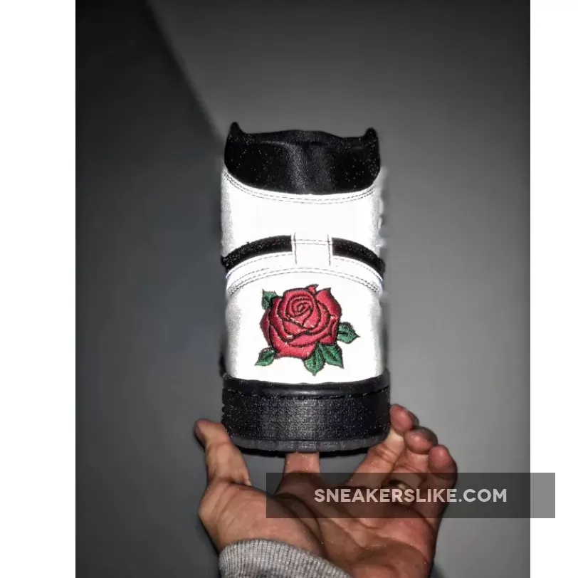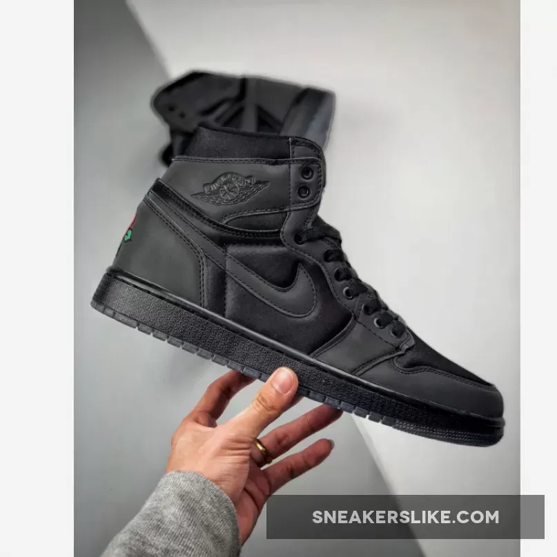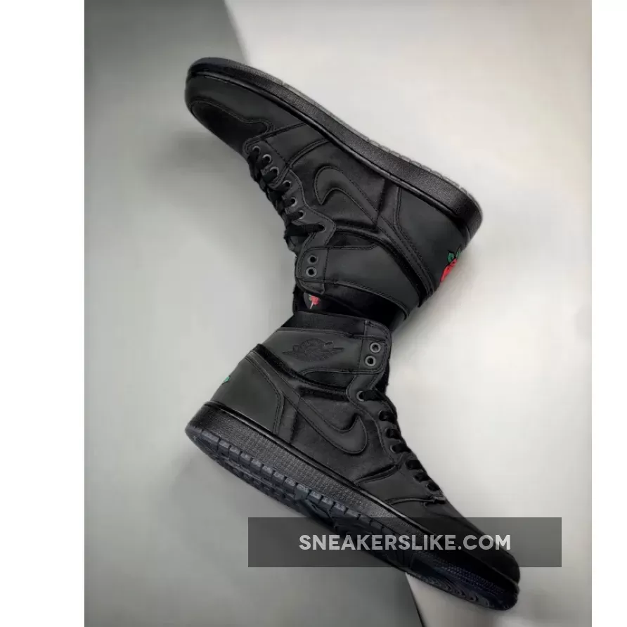 Part of Jordan Brand’s “The One” series, this Air Jordan 1 comes dressed in a Black and Metallic Gold color scheme. It features an all-Black reflective leather and neoprene upper highlighted with rose logos on the tongue labels and embroidered on the heels as a nod a tattoo on her back.
