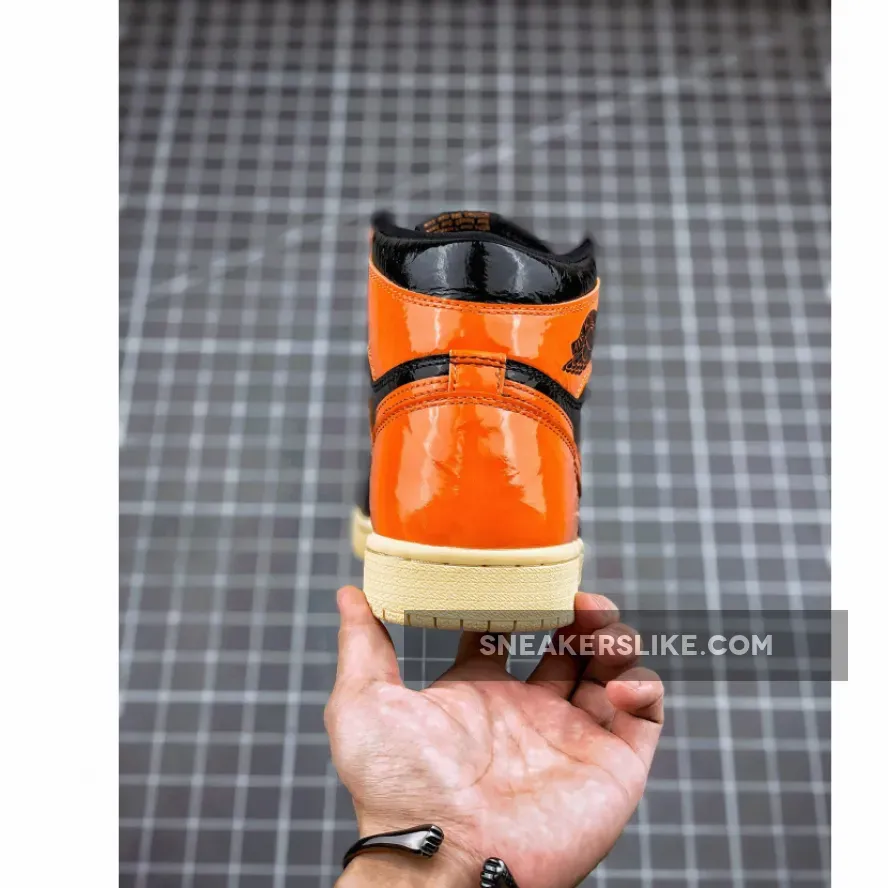 The Air Jordan 1 Retro High OG ‘Shattered Backboard 3.0’ revisits a coveted colorway inspired by a Michael Jordan backboard-breaking dunk that took place during a 1985 Nike exhibition game. The shoe’s colorway of black, Pale Vanilla and Starfish matches the colors of the jersey MJ sported that day. Released in October 2019, this third edition of the sneaker features a crinkled, glossy patent leather upper that alludes to the hoop’s broken glass, a fitting tribute to an early iconic moment.