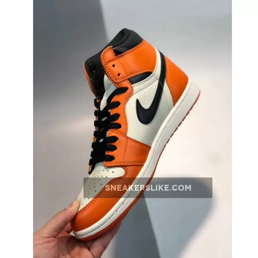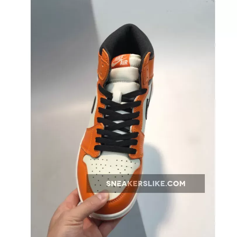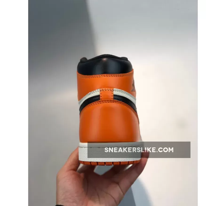 In 1985 on a Nike Europe tour, Michael Jordan shattered a backboard when throwing down a monstrous dunk while wearing an orange, black, and white uniform. Commemorating the moment and uniform, a 2015 Air Jordan 1 ‘Shattered Backboard’ (aka ‘Shattered Backboard’ 1.0) sneaker was released. Shortly after in the Fall of 2016, an Air Jordan 1 ‘Shattered Backboard Away’ (aka ‘Reverse’ and ‘Shattered Backboard 2.0’) was released. This sneaker keeps the black laces and Nike branding, but swaps out the orange toe box and black around the toe and tongue for white.