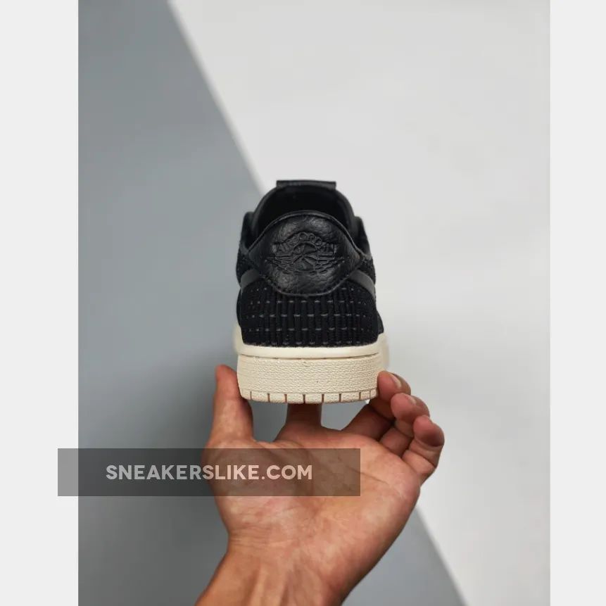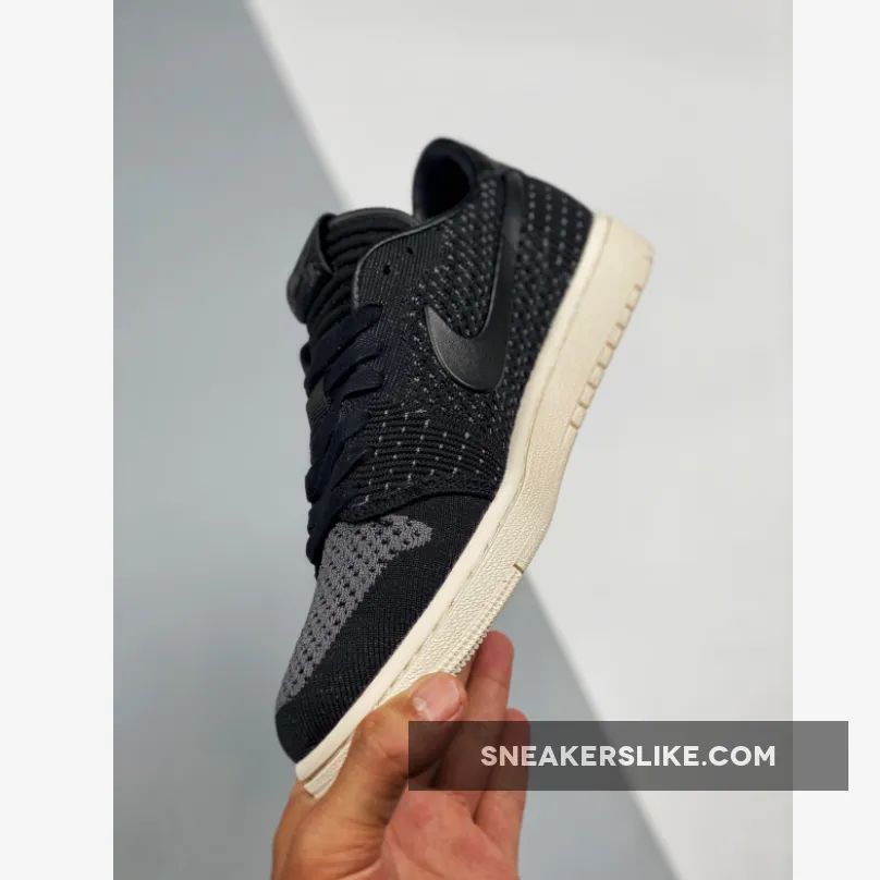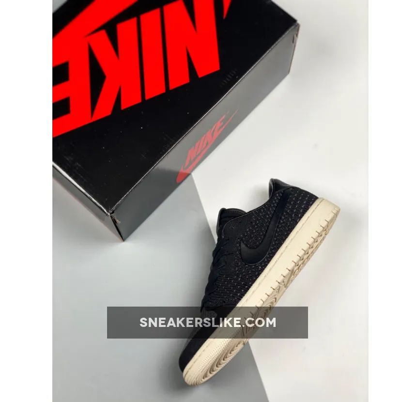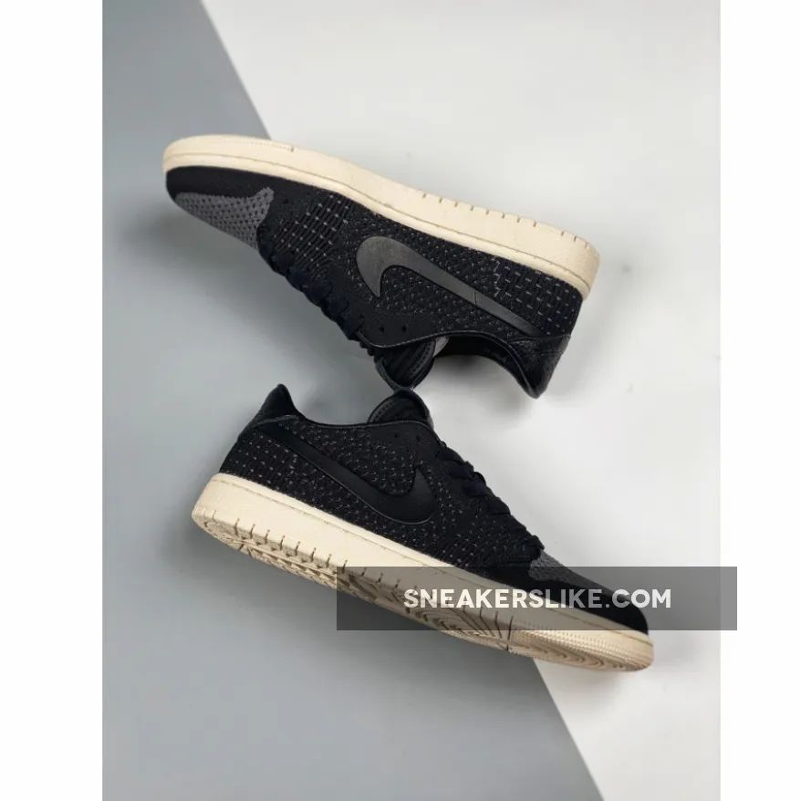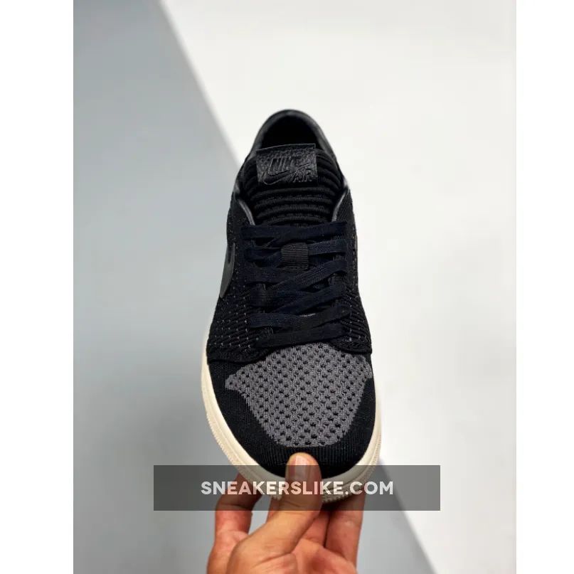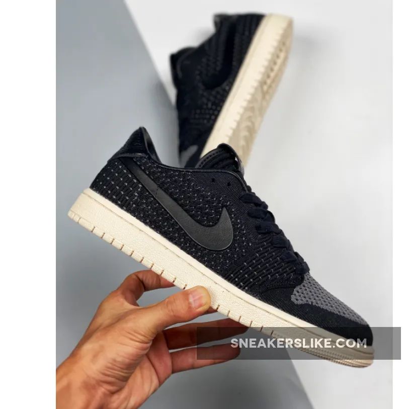 This time around the modern version of the Jordan 1 comes covered in black all throughout the new Flyknit upper with leather detailing on the heel and what appears to be rubber Swooshes on the side panels. Finishing details include black waxed laces, leather Nike Air branding on the tongue, debossed Wings logos on the heels, and a Sail rubber midsole/outsole.