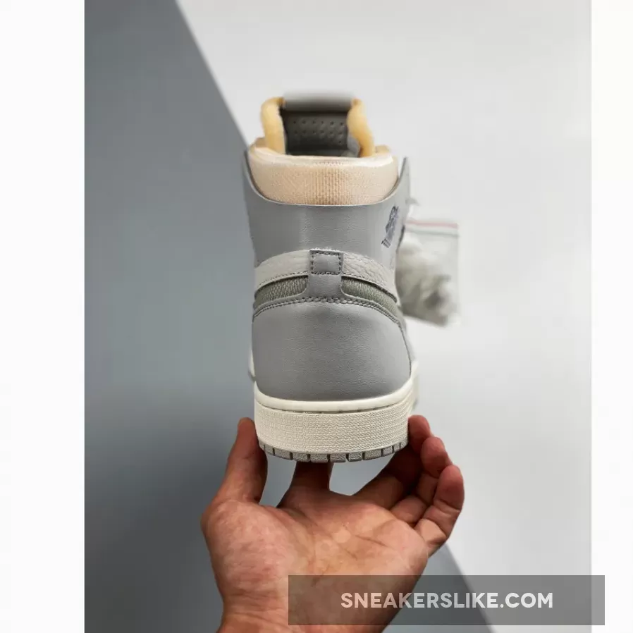 A closer look at the upcoming Jordan 1 Zoom Comfort London shows a new clean colorway that is a must-have for any Jordan heads and detailed images we received here at Our Store Supplier instantly tells us why there is a huge hype surrounding this pair. The Jordan 1 Zoom Comfort London raffles list is now live on our page so don’t forget to check it out for your best chance to cop.Flaunting a combination of tumbled and supple leather overlays, a muted-grey colour palette that wraps around the panels from heel to toe bears a striking resemblance to the Nike Air Max 1 London colourway that dropped as part of the Nike’s “City Series” pack last year. Michael Jordan’s legendary ball and wings logo are present as ever on the ankle feel in a teal blue hue for a pop of contrast, alongside further Nike branding details on the tongue in the same tone to complete the look of this AJ1 High.