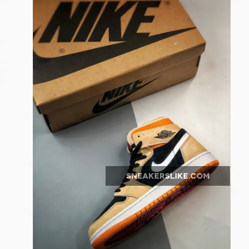 The suede of the forefoot, eye stay, lower heel and ankle flabs are in a light ginger orange colour. A bright pumpkin orange stands out in this pair’s collar and outsole. A Halloween black contrasts nicely on the nubuck toe box, the laces, the quarter panelling and the Wings logo embossed on the collar. Use our Air Jordan 1 size guide to know how they fit.