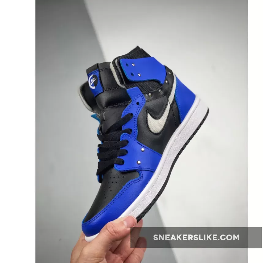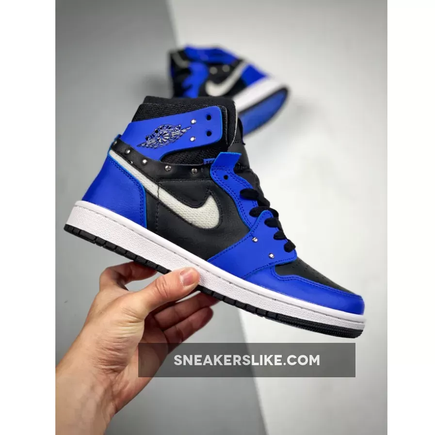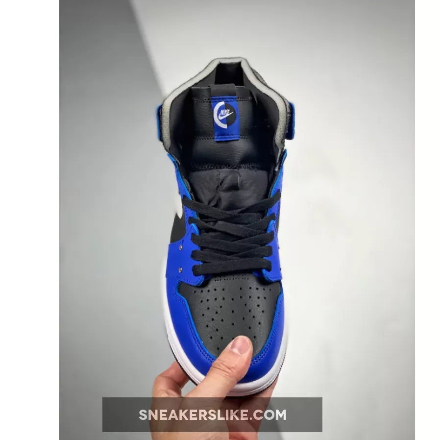 this Air Jordan 1 Zoom Comfort comes dressed in a Hyper Royal, Black and White color combination. Constructed with Black leather on the base while Royal Blue lands on the overlays. Highlighting this pair is a cut-out Swoosh showcasing White mesh while White rivets are placed throughout.