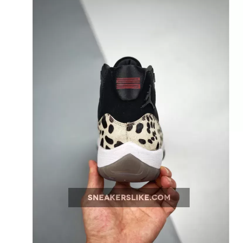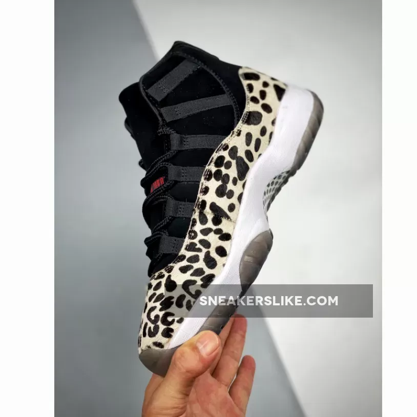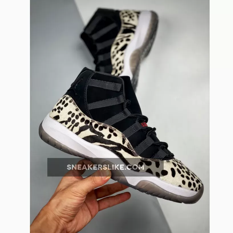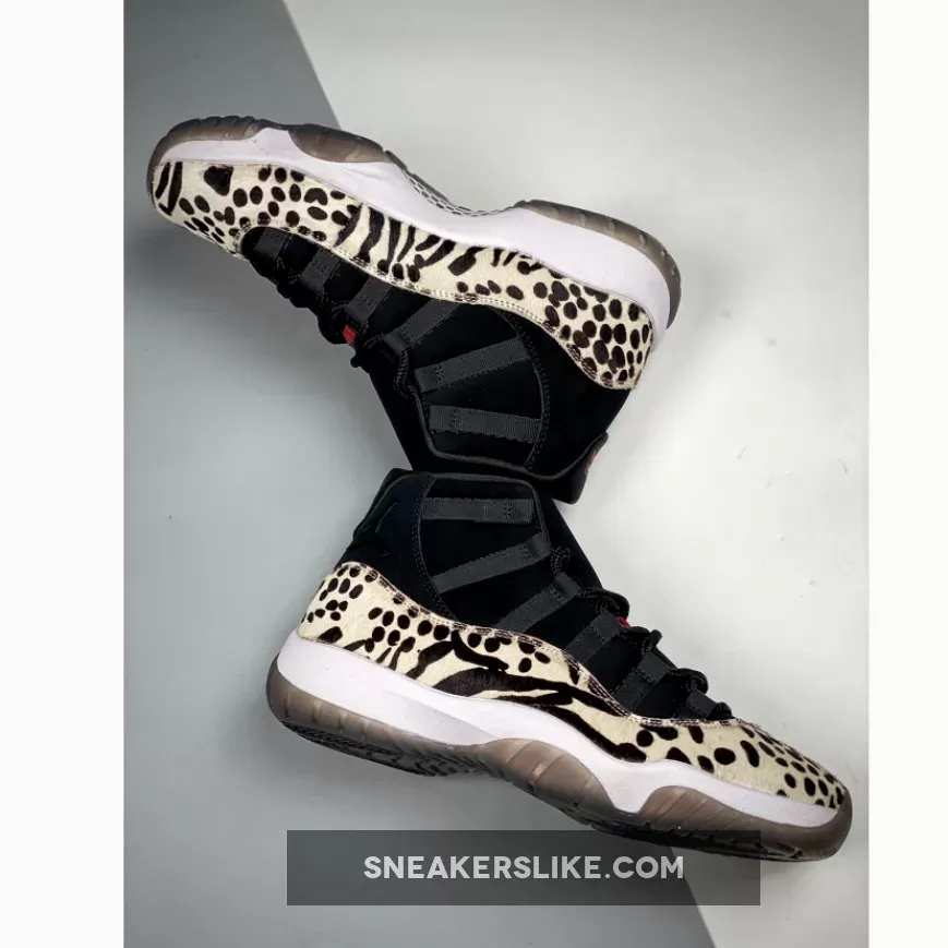 Channel your inner beast with the Air Jordan 11 Animal Instinct. This fashionable shoe begins with a plain black synthetic leather base which serves as the perfect canvas for the animal print in the exaggerated mudguard to revel in the spotlight. Gone is the Air Jordan 11’s signature patent leather look and in its place is a faux fur design featuring a mix of zebra stripes and cheetah spots. Meanwhile, pops of red at the tongue branding add fierceness to the shoe.