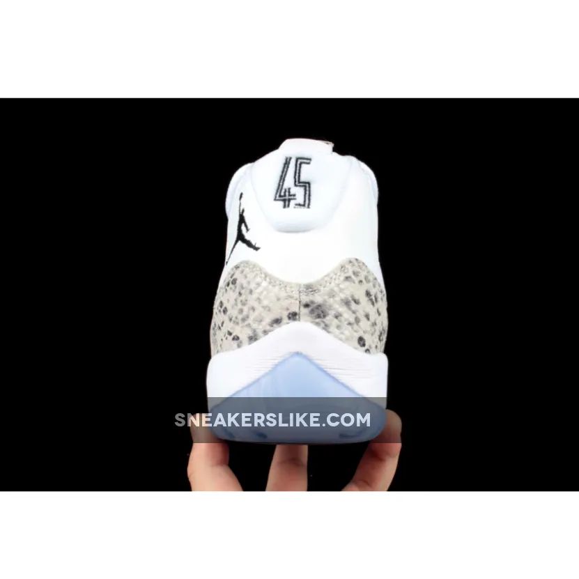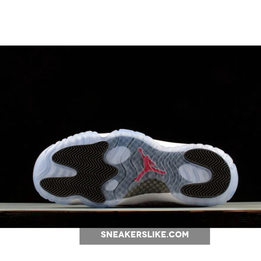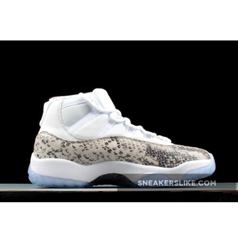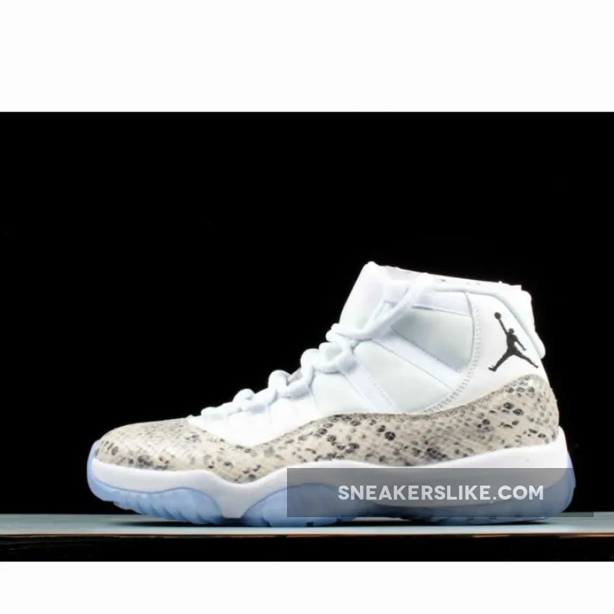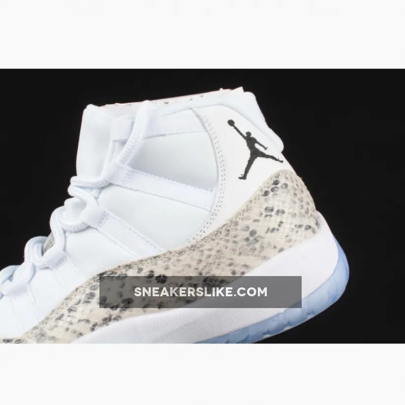 Both Air Jordan 11s feature a White mesh upper with the signature Snakeskin texture on its mudguard.