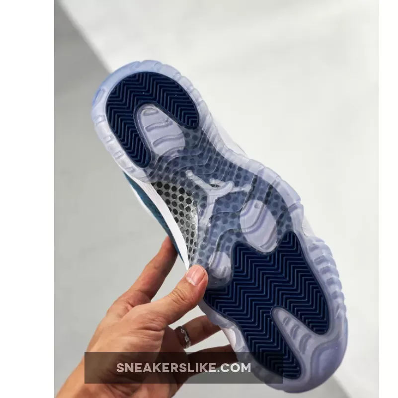 From ‘96 to this date, Nike’s Air Jordan 11 remains one of the best and reliable basketball silhouettes. A unique lacing system is infused in this Air classic and the sidewall stripes that connect to it. The premium leather upper body stays pure chalk-white all over including the tongue, stripes, laces, and inner lining. The forged snakeskin leather on the mudguard hits a luxurious and elegant shade of blue. This layer reaches to the toe box as well. You can flaunt this beast both on and off the hardwood floor without any worries.