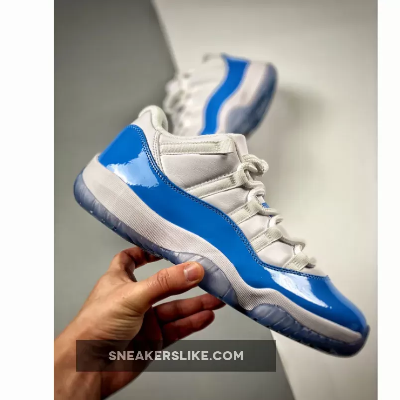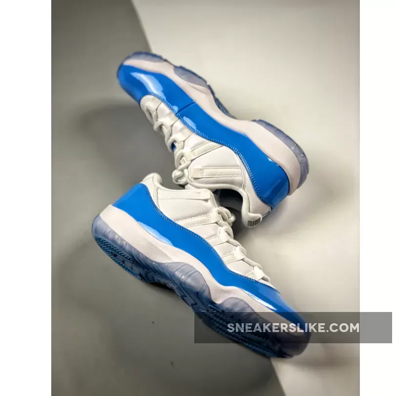 Released in April of 2017, the Air Jordan 11 Retro Low ‘UNC’ is based on the 2001 Air Jordan 11 Retro Low ‘Columbia’ that dropped alongside the Air Jordan 11 Retro Low ‘Cherry.’ The design combines a North Carolina Tar Heels-inspired white mesh upper with university blue leather overlays, and an ice blue translucent outsole. Unlike the release in 2001, the 2017 release retails in full family sizes.