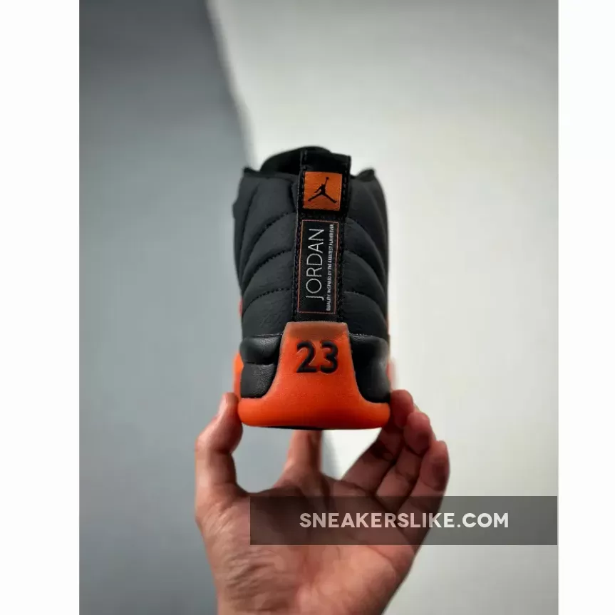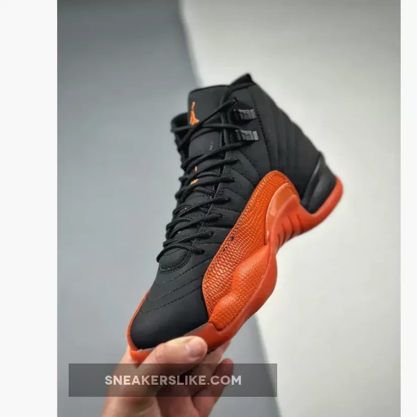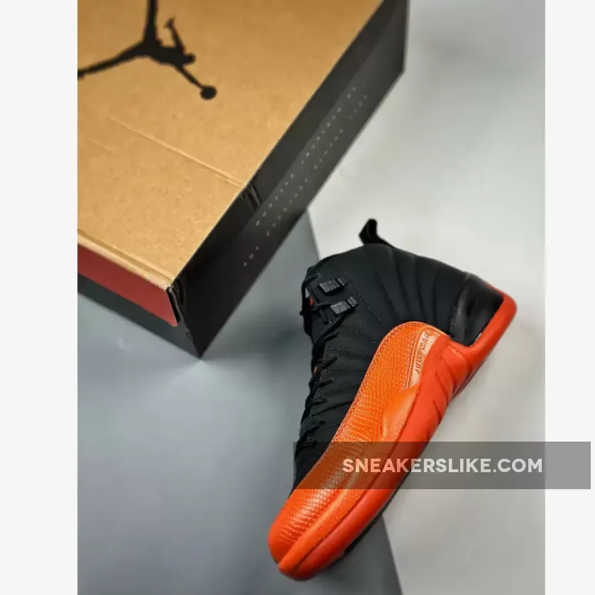Dressed in a Black, Brilliant Orange, and White color scheme.this Air Jordan 12 is expected to come constructed in a full leather build featuring a Black base with Orange overlays and branding. White along the heel pull tab completes the design.