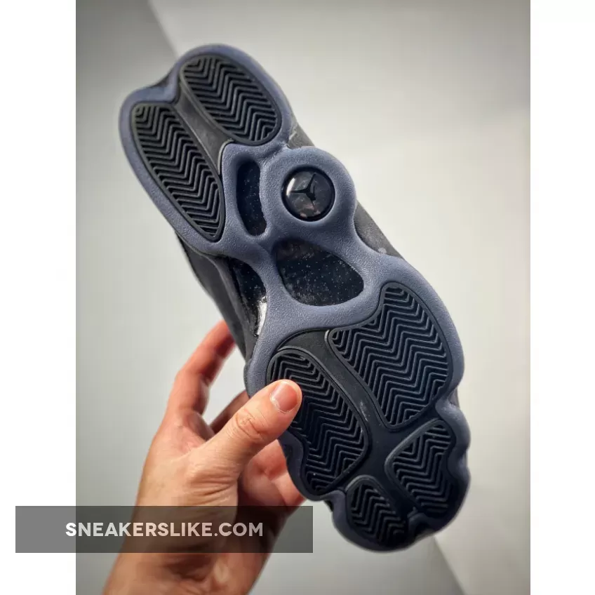 The ‘Cap and Gown’ colorway of the Air Jordan 13 renders the retro basketball sneaker with a Triple Black palette similar to the ‘Black Cat’ model. The shoe disguises the signature hologram icon next to the collar with a tonal finish for a covert look.