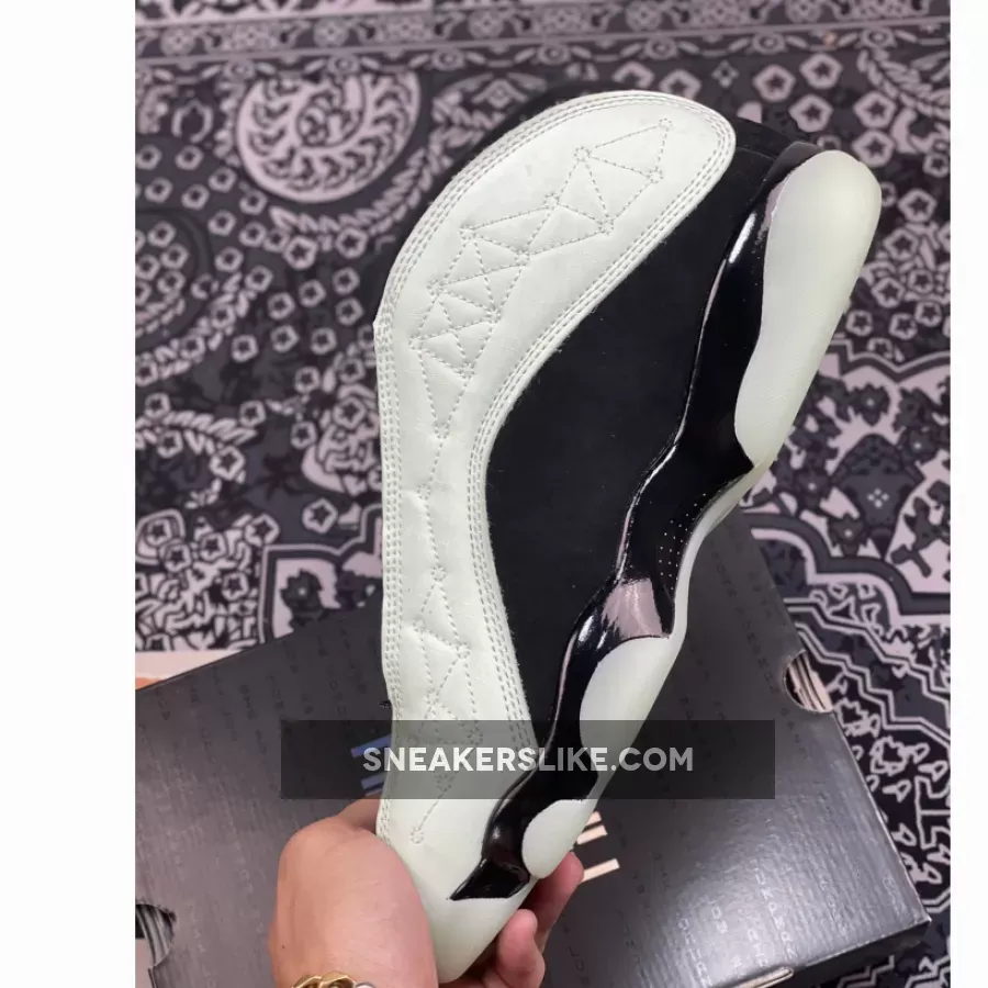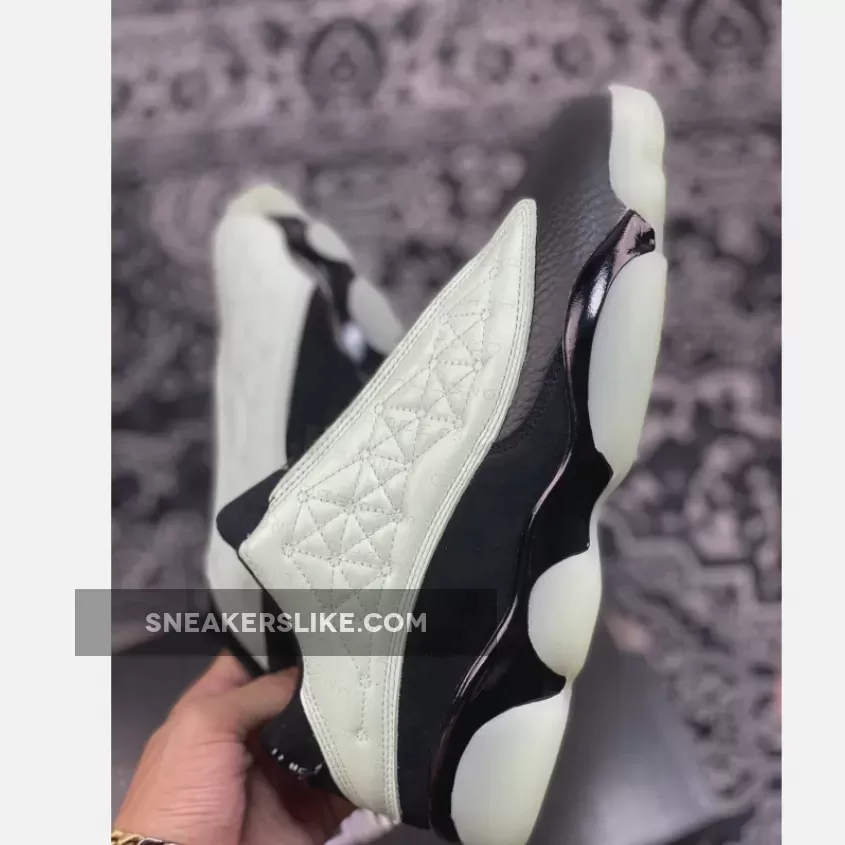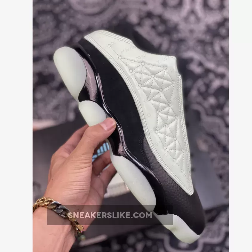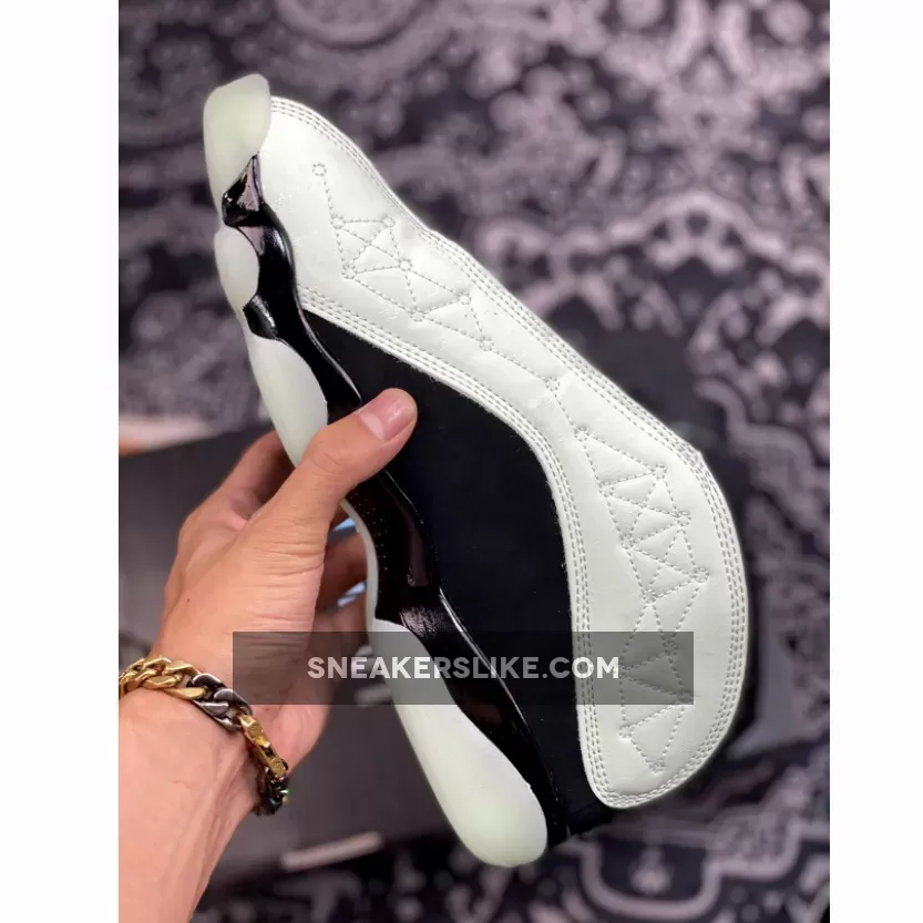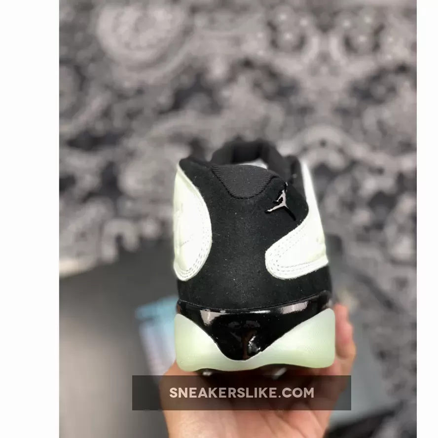 Who says only couples get a special day to celebrate? Showcase your self-love with the Air Jordan 13 Low Singles Day. This pair boasts a sleek black pebbled leather base that matches the throat and ankle. It is topped with a tumbled mint green leather overlay in the side panel that features a constellation-like geometric pattern stitched onto upper. These shoes’ true beauty shines when the light goes out as glow-in-the-dark text that says “1111 Low” and “Air Jordan 2021” is revealed. Finishing the futuristic look is the glow-in-the-dark chunky outsole.