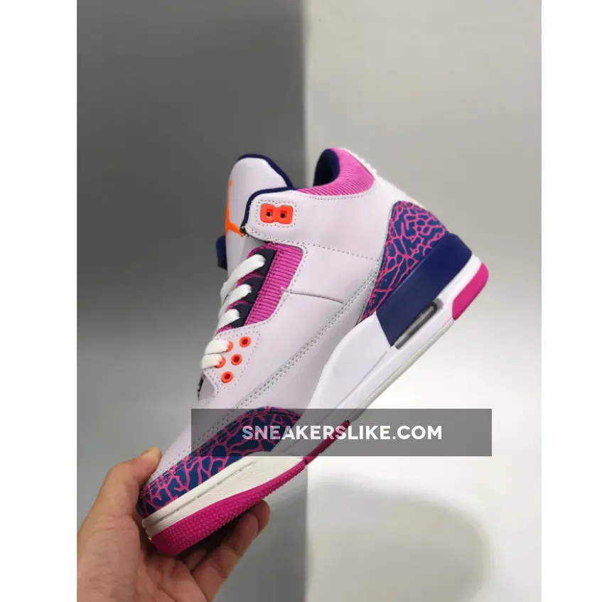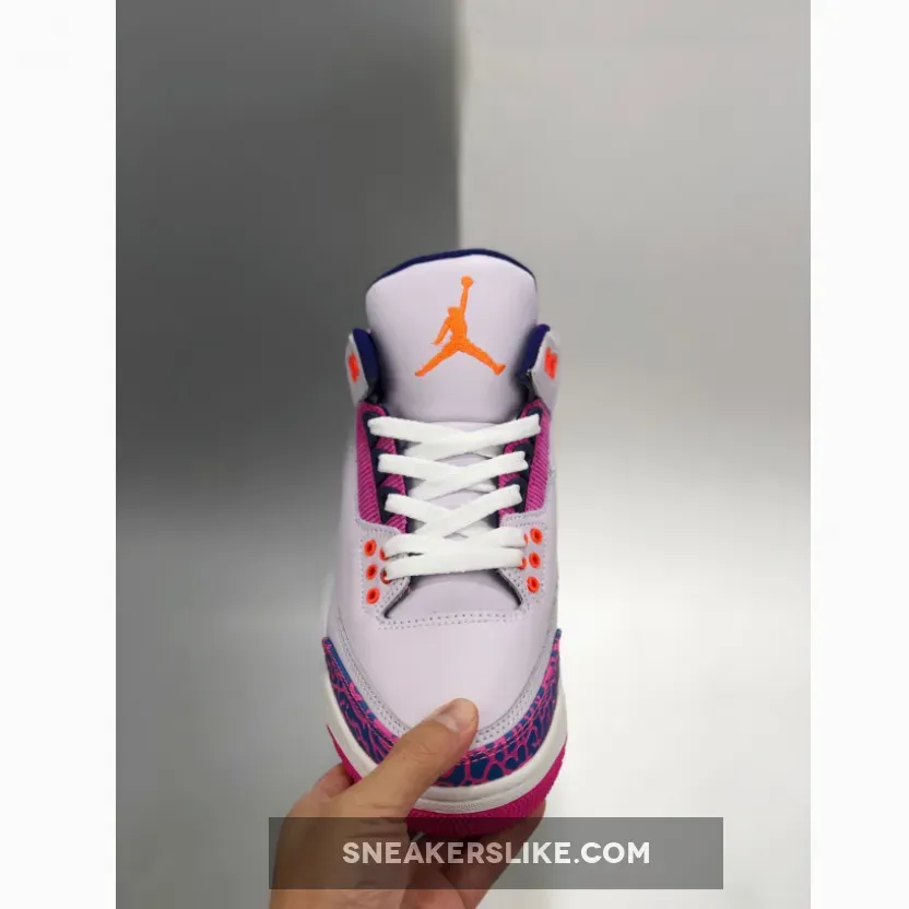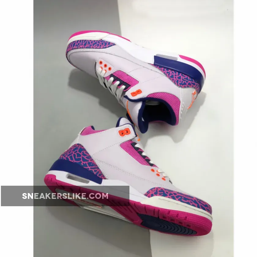 This Air Jordan 3 comes dressed in a Barely Grape, Hyper Crimson and Fire Pink color combination. Utilizing White leather across the upper while elephant print in Pink wraps the toe and heel.