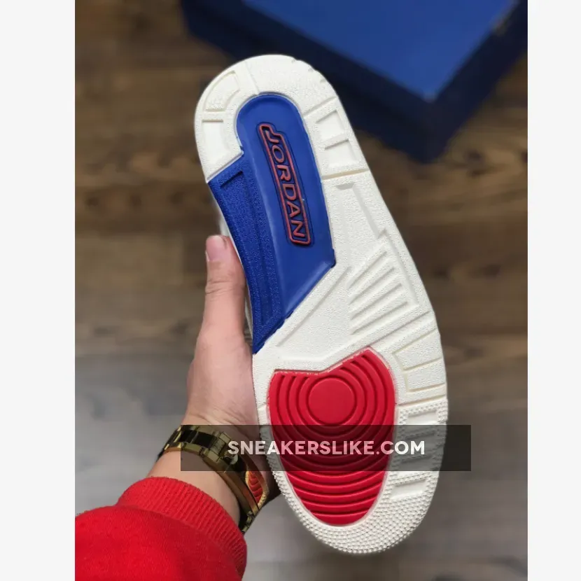 This red, white and blue theme sees a predominantly “Sail” leather upper with hits of “Light Bone” cement detailing at the heel and toe area.