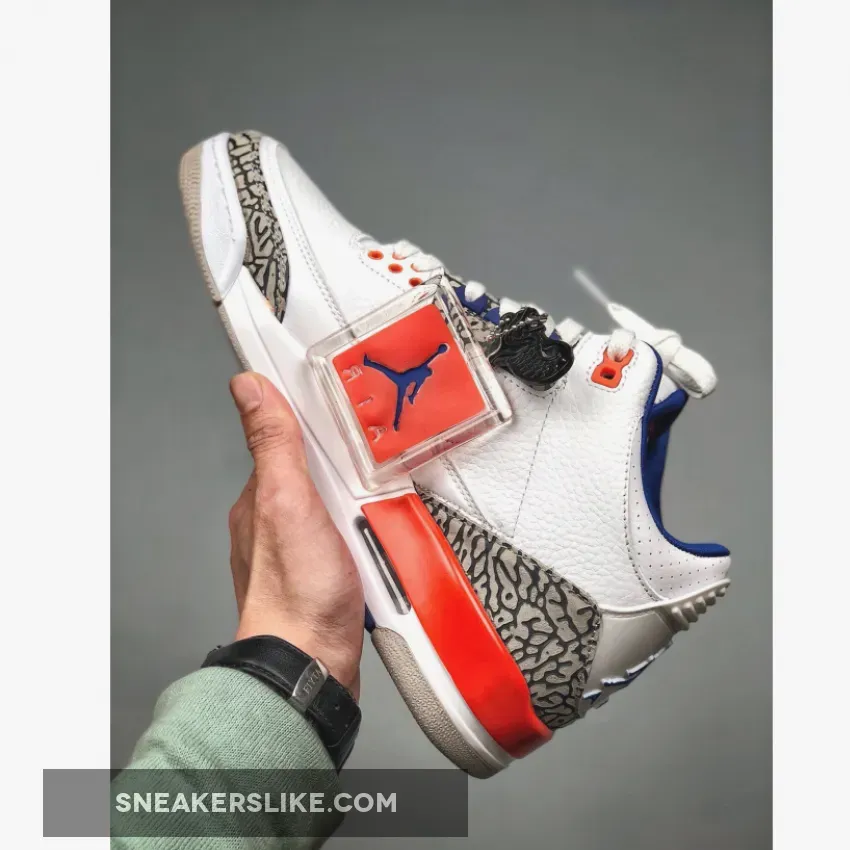 “I’m stoked with my Air Jordan 3 Retro ‘Knicks’! The tumbled leather upper is top-notch & the elephant print adds a nice touch. The royal blue accents pop against the white base. Overall, great quality & comfy fit – 5/5 stars!”