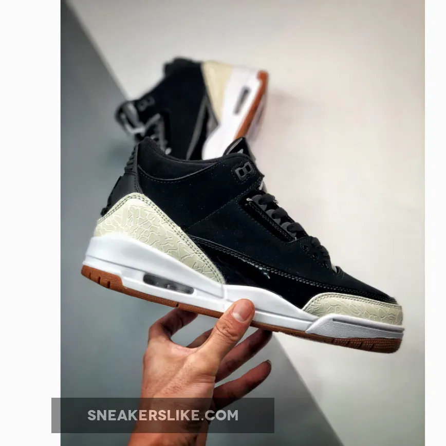 Dressed in a Black and White color scheme. This Air Jordan 3 features a Black upper with patent leather on the tongues and overlays. White detailing appears on the Jumpman branded tongues, overlays on the toe and heel as well as the midsole.