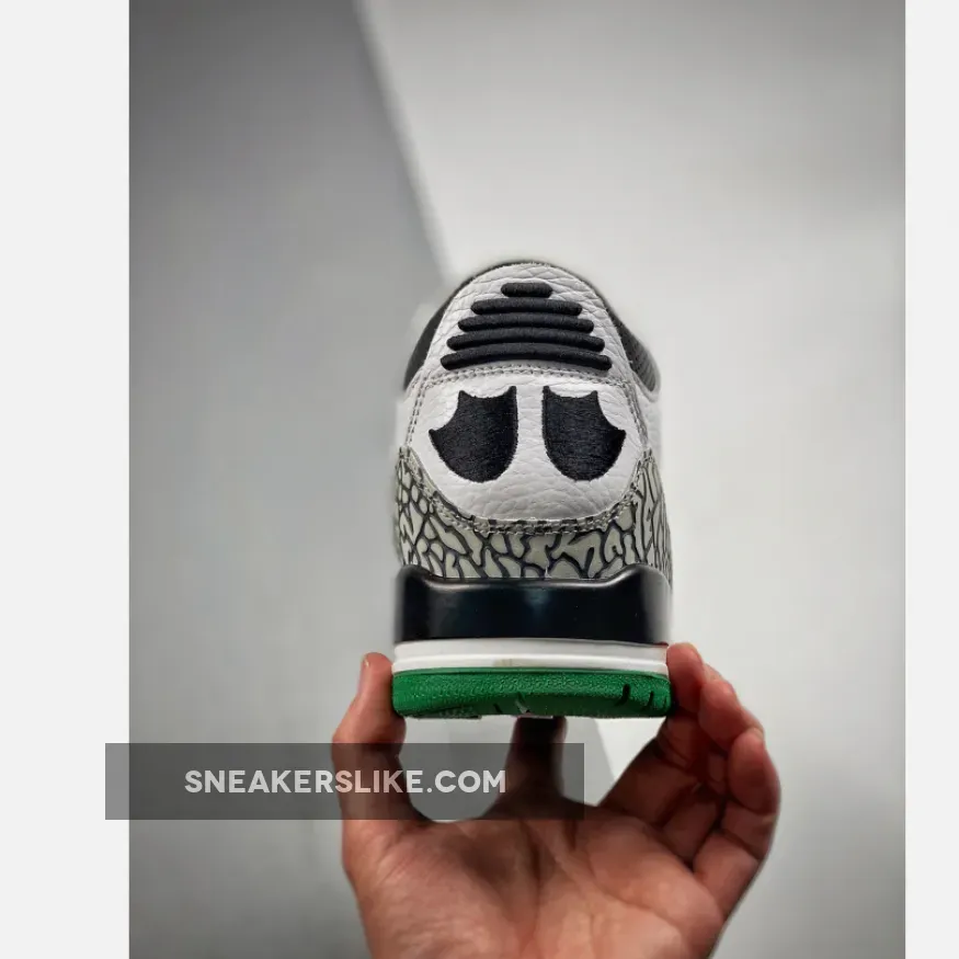 After a detailed look at the Oregon “Pit Crew” Air Jordan 3 over the weekend, here’s a closer look at the Oregon “Home” colorway. Inspired by the original “Cement” colorway, the shoe features a white tumbled leather base, accented by grey elephant print overlay rands wrapped around the toebox and heel. Contrasting black hits are used for the laces eyelets, “O” embroidery, tongue padding, collar, duck feet embroidery on the heel and rear portion of the midsole. These were limited to students, athletes, staff and select alumni.