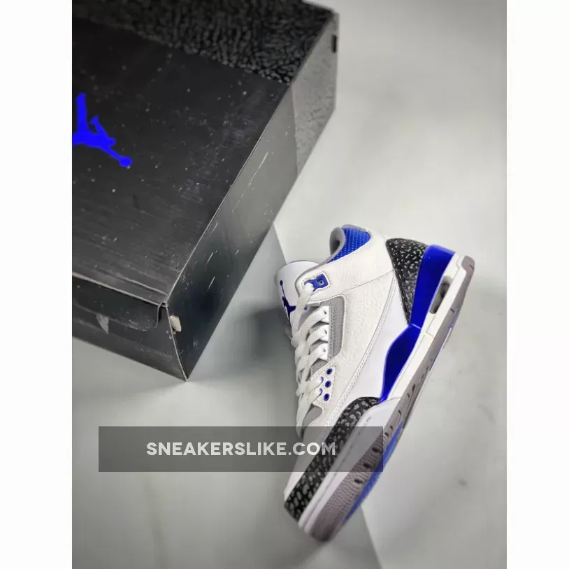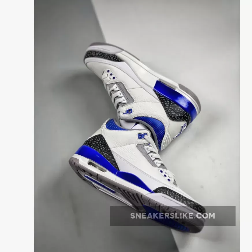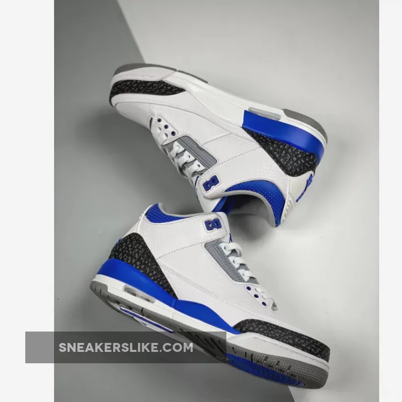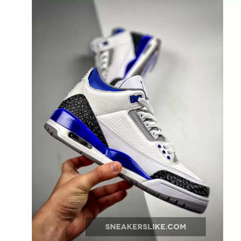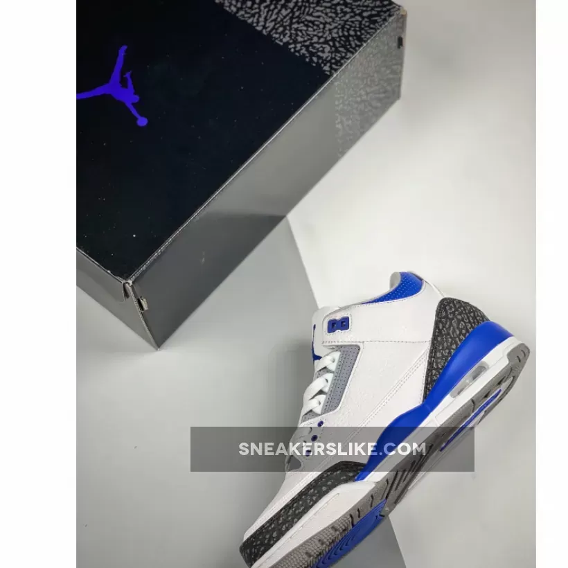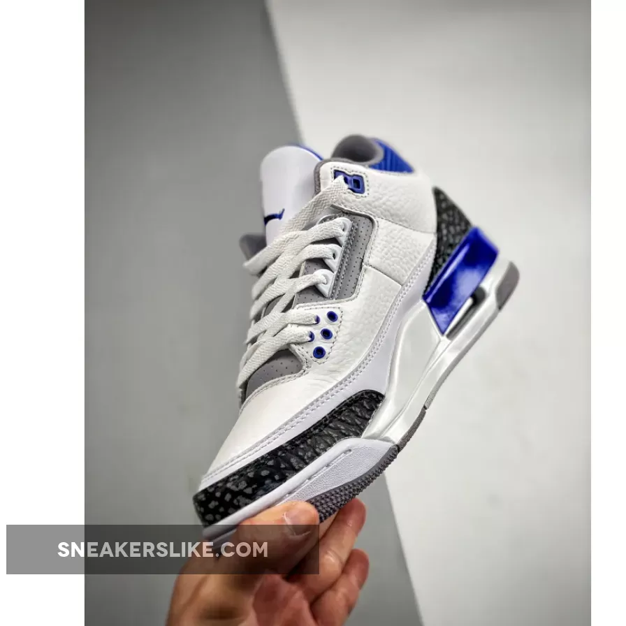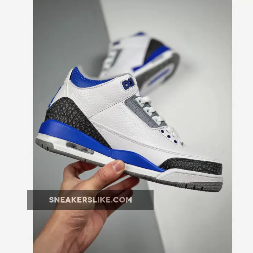 The Jordan 3 Racer Blue is one of the new colourways of Michael Jordan’s third signature basketball sneakers that has become a hot topic in the community. The AJ3 is a sneaker designed by the legendary Tinker Hatfield back in 1998 and remained a fan-favoured silhouette by Jordan fans and sneakerheads ever since. Assembled from premium tumbled leather throughout, the uppers maintain their OG Air Jordan III slam-dunking features. Boasting a white leather base accentuated with a Racer Blue colourway on core components, this basketball sneaker will be a sure eye-opener to the masses. A set of clean white laces completes the AJ3 while plenty of padding around the ankles provides support and stability for the usage on and off-court.Elsewhere, elephant print graphics in a tonal black hue grace the mudguard and heel while the tongue boasts the iconic Jumpman logo embroidered elegantly.Let us know if the Air Jordan 3 Racer Blue is a must-cop for you and make sure you use our Air Jordan 3 size guide to know how they fit. As always, keep it locked in right here at Our Store Supplier to stay in the know of all upcoming Nike releases.