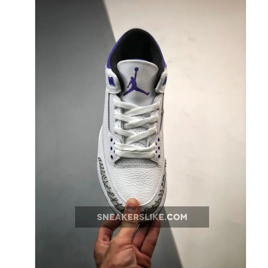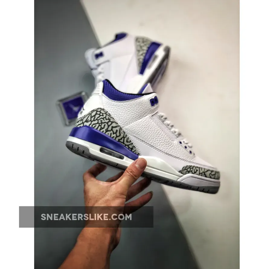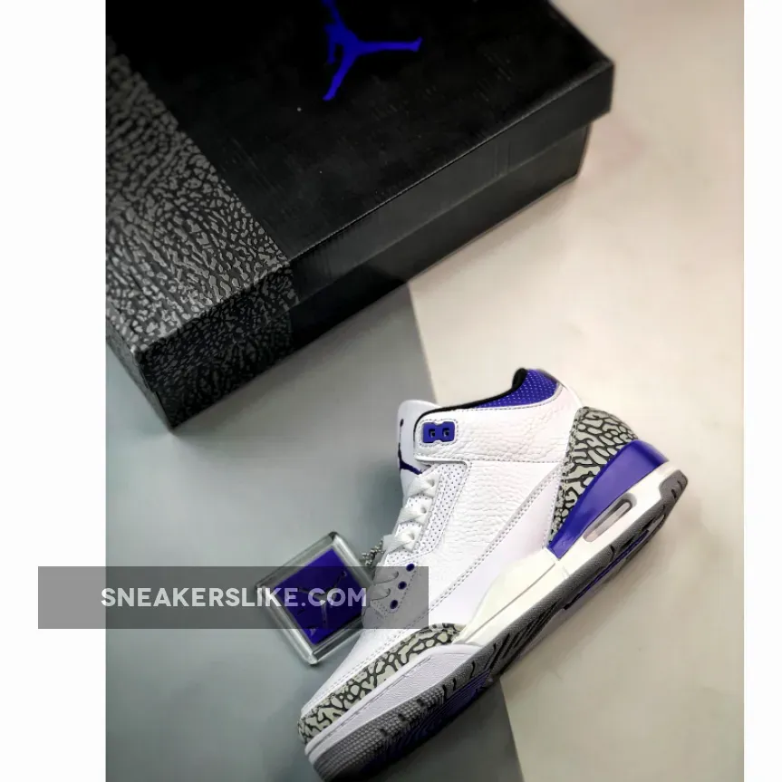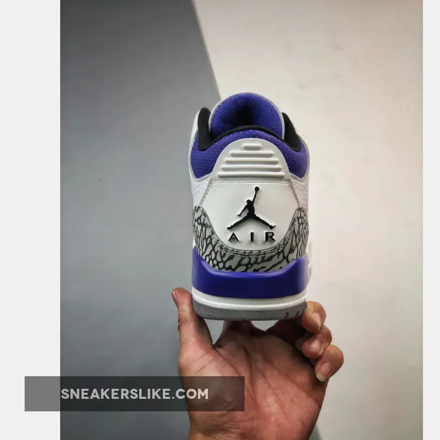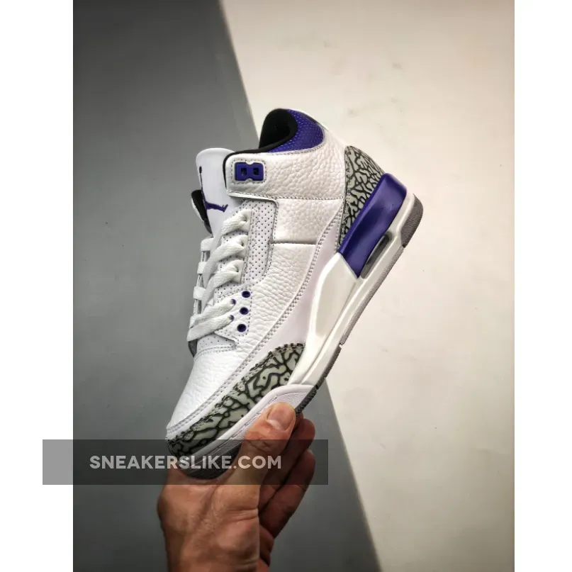 Touches of “Dark Iris” peppered throughout the shoe complete the snazzy look of this Air Jordan 3.