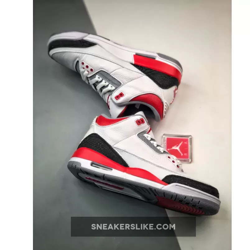Dressed in a Chicago Bulls-inspired White, Fire Red, Silver and Black color scheme. This Air Jordan 3 featured a White leather upper that’s highlighted with Fire Red contrasting accents. This release was the only colorway of the four original Air Jordan 3s to feature Black Elephant Print overlay.