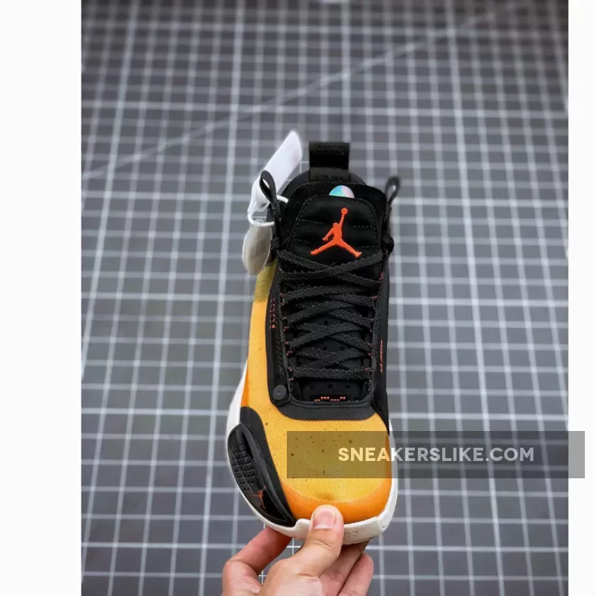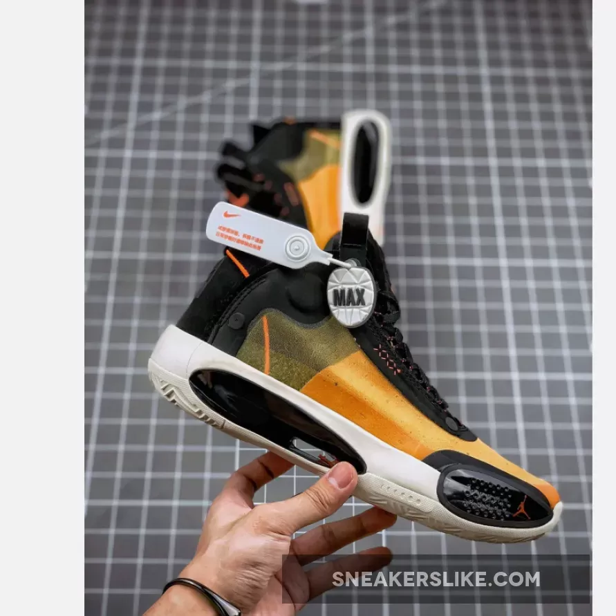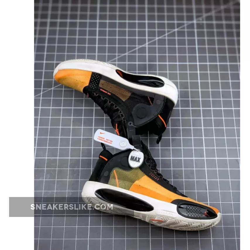 Dressed in an Amber Rise, Black, Sail and Metallic Silver color combination. Instead of featuring a translucent upper, this Air Jordan 34 features TPE layering on the lateral side and toe. In addition Orange covers part of the upper along with Black detailing.