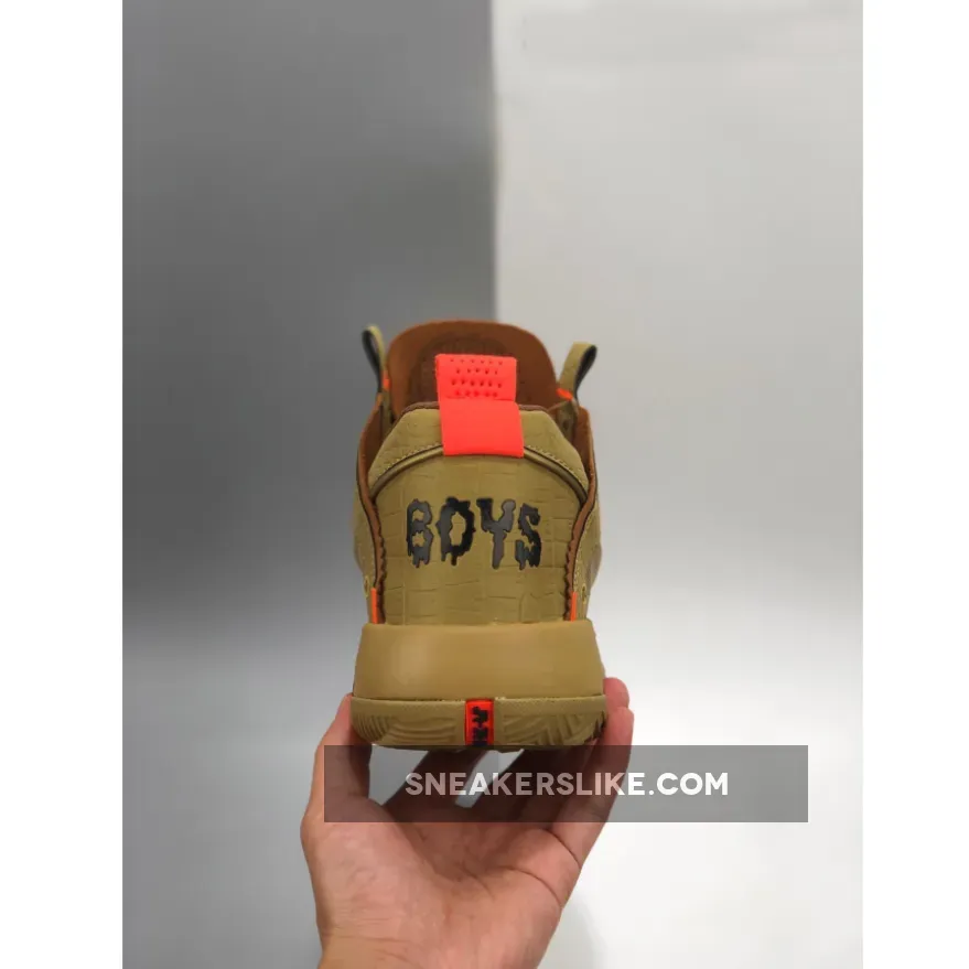The reflective faux gator material is inspired by Williamson’s play in the Bayou State and by his aggressive playing style, punctuated by the sharp teeth at the base of the tongue.
