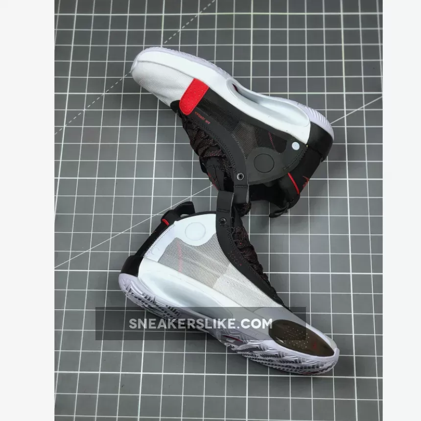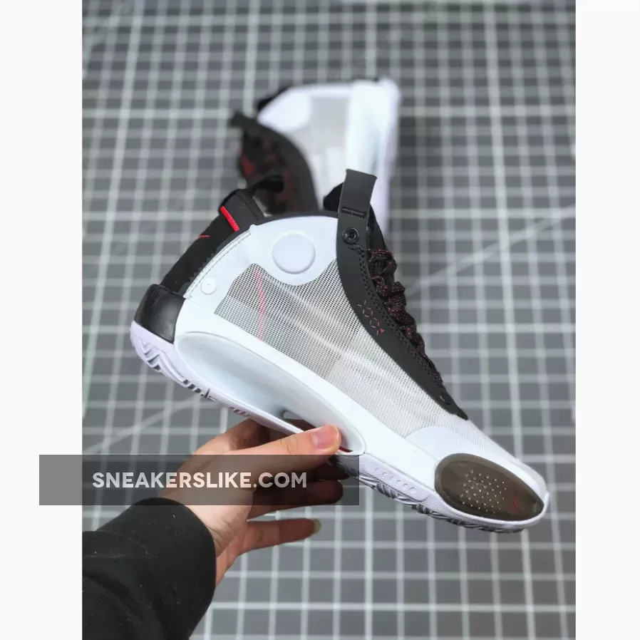 One of those is this upcoming offering that sports the popular “Bred” color blocking. This Air Jordan XXXIV features a White and Black upper paired with Red contrasting accents including “Nike Air” branded on the heels.