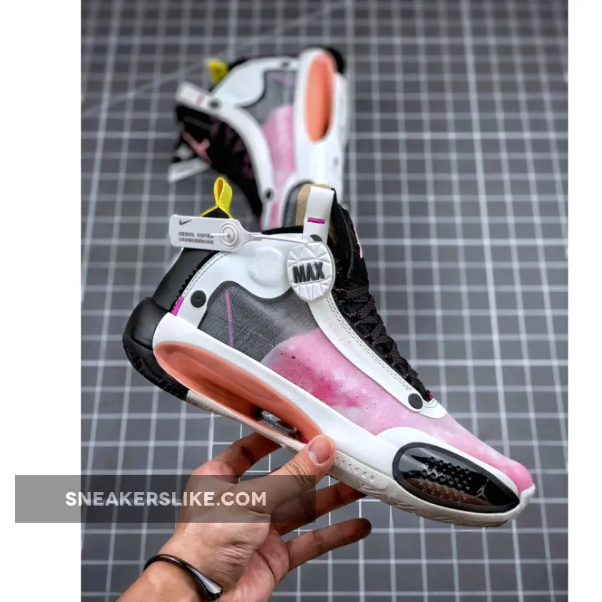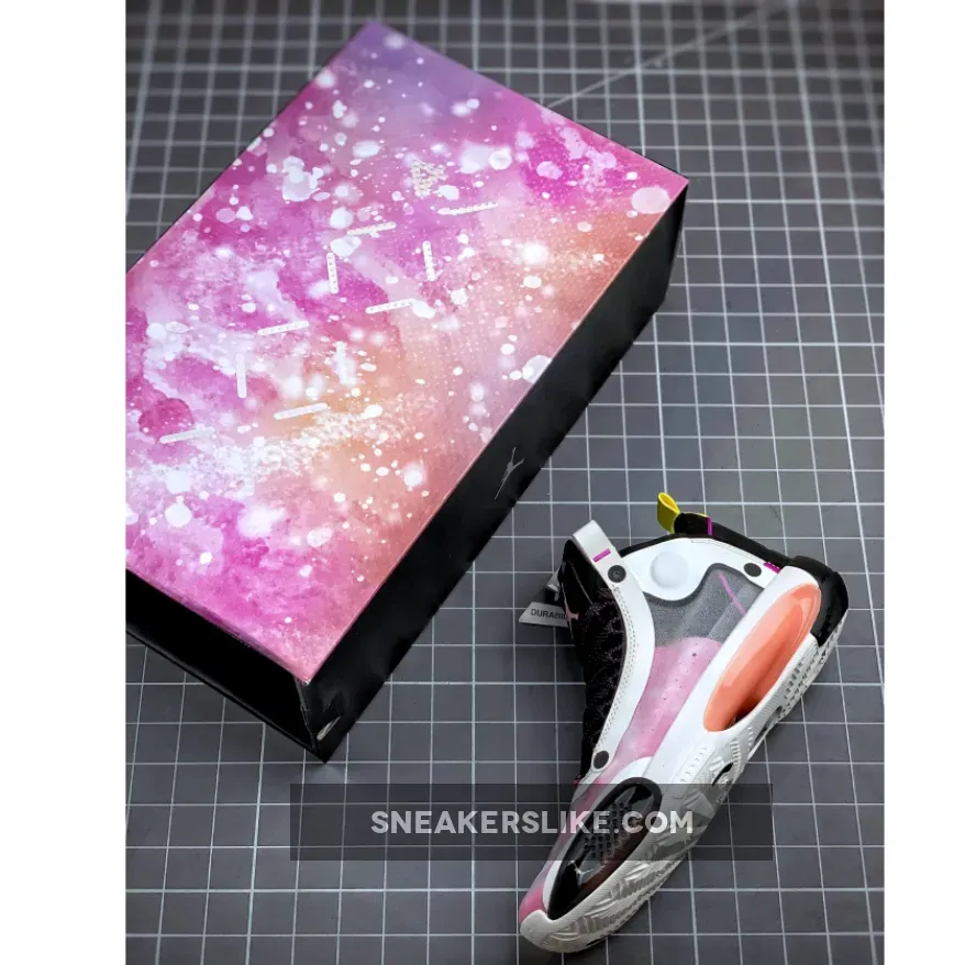 “I’m totally stoked on these Air Jordan 34 ‘Paris’ sneakers! The pink and purple gradient is so sick, and the black accents give it a sleek touch. Love the ‘Paname’ detail – adds a unique flair. Jumpman logo pops nicely against the iridescent heel. Comfy fit too! Worth every penny.”