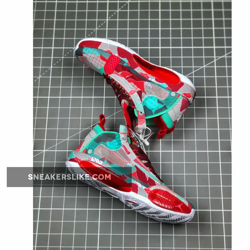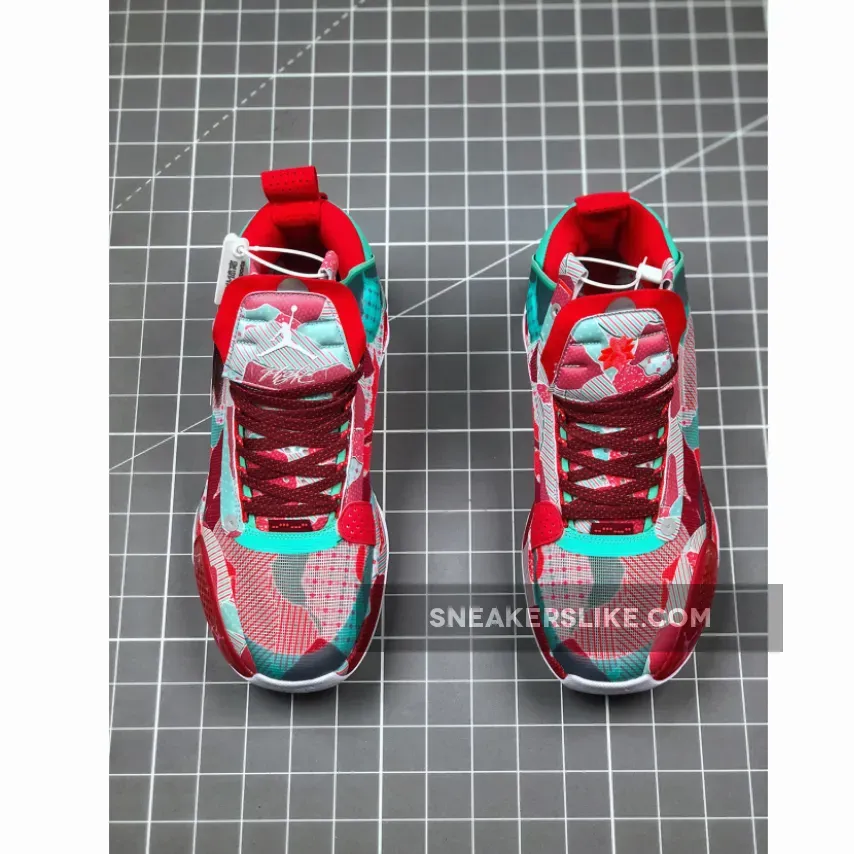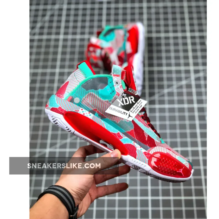 This player exclusive version of the Air Jordan XXXIV comes dressed in the signature Christmas colors fully covered in wrapping paper. Jumpman Flight branding on the tongue and Nike Air on the heels completes the design.