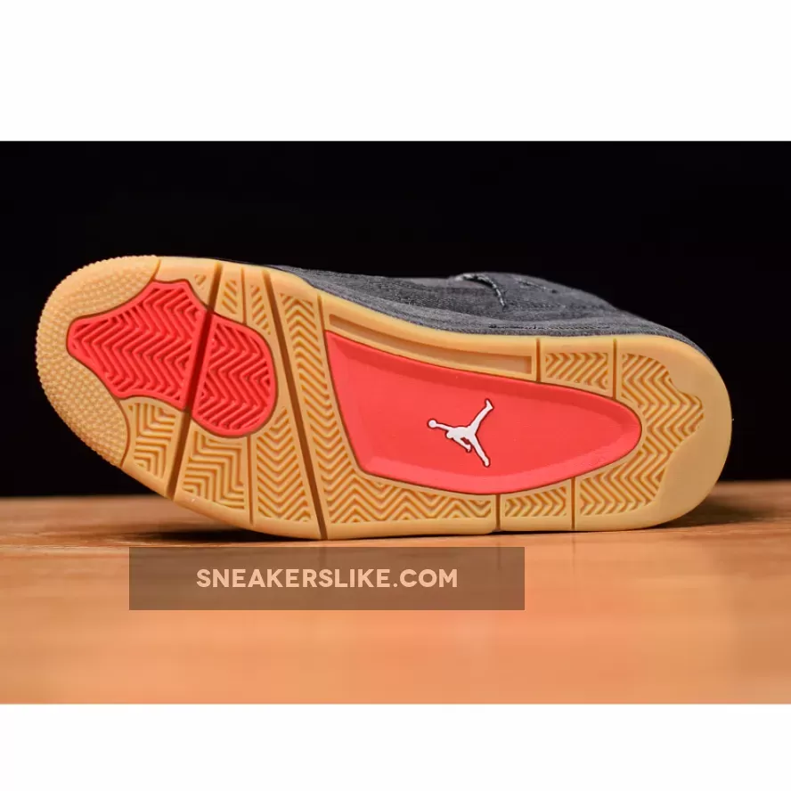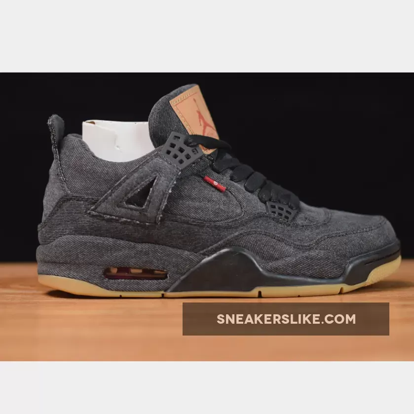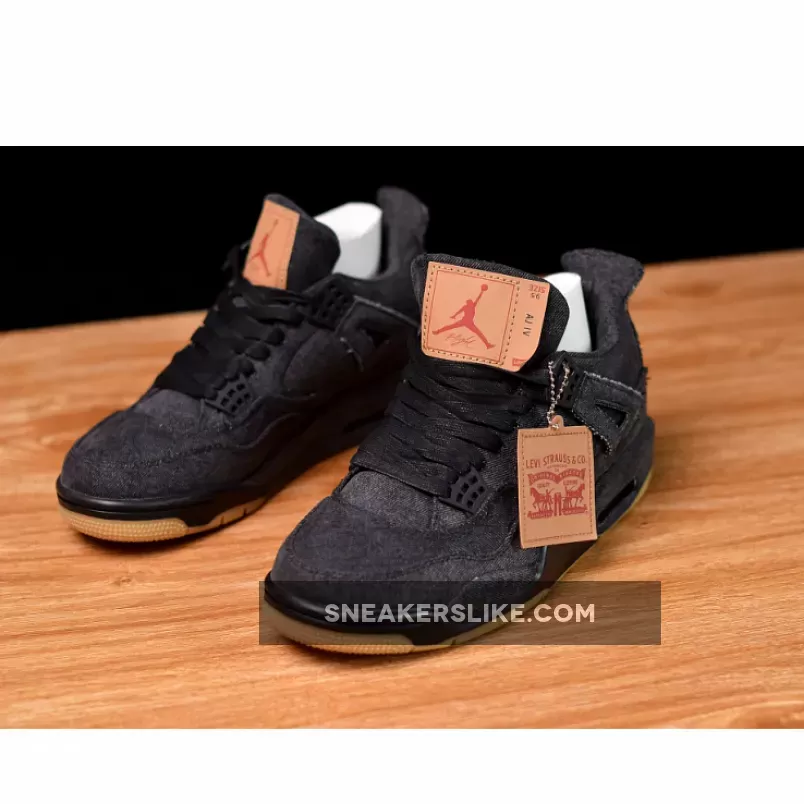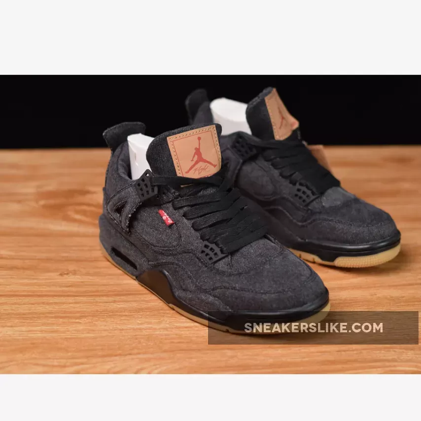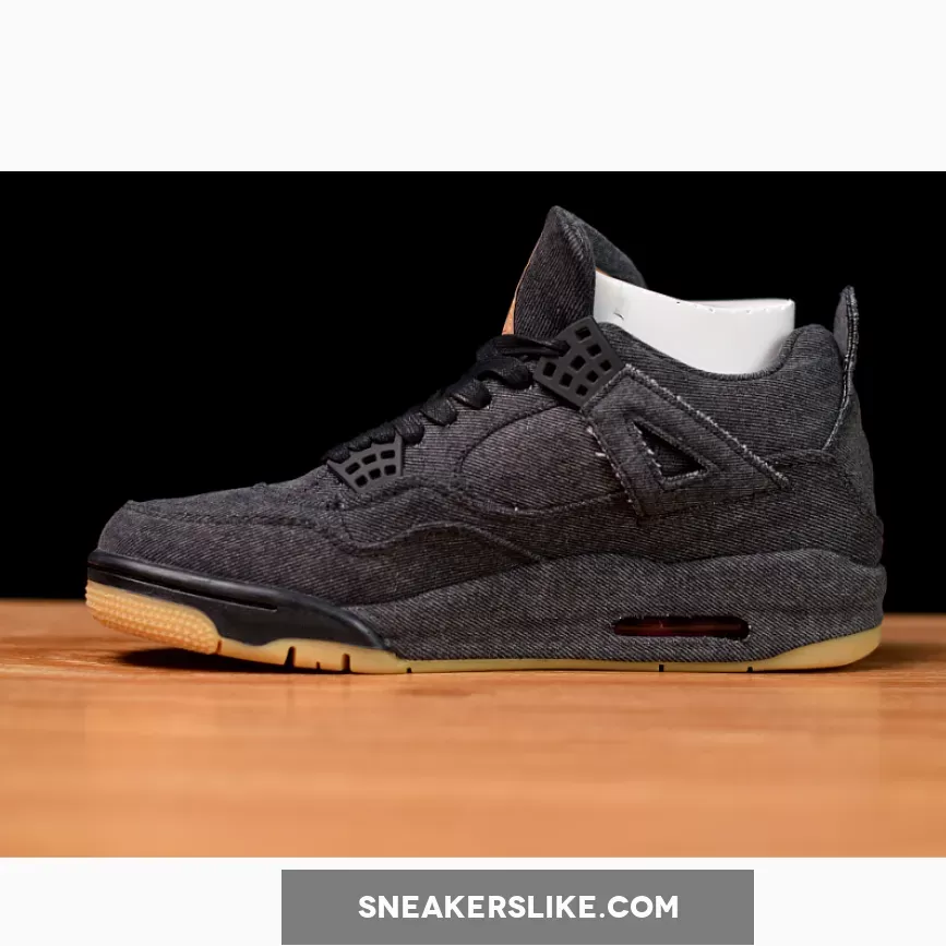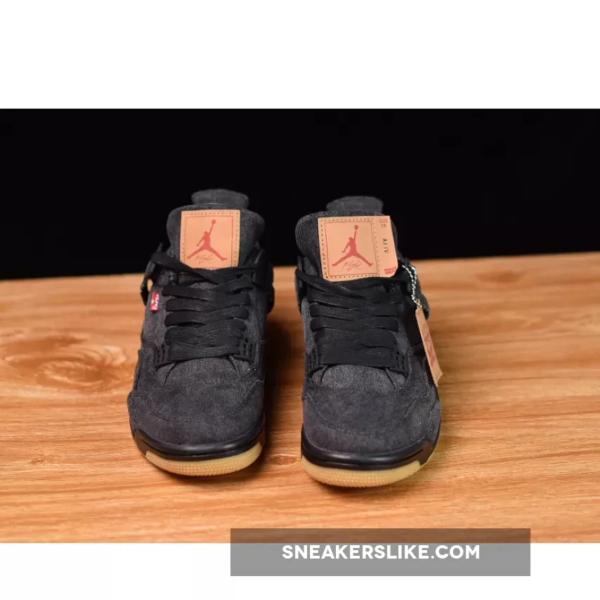this Air Jordan 4 features Black Denim across the uppers while a lighter shade of Denim lands on the base. Levi’s x Air Jordan 4 Color: Black/Black Release Date: June 16, 2018 Product Number: AO2571-001 Price: $225