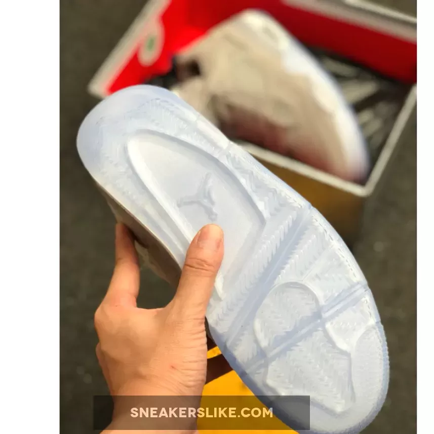 This player exclusive features a Grey suede upper with speckled detailing on the translucent wings and midsole. Navy details the inner tongue and speckled back heel tab displaying a Grey Jumpman logo.