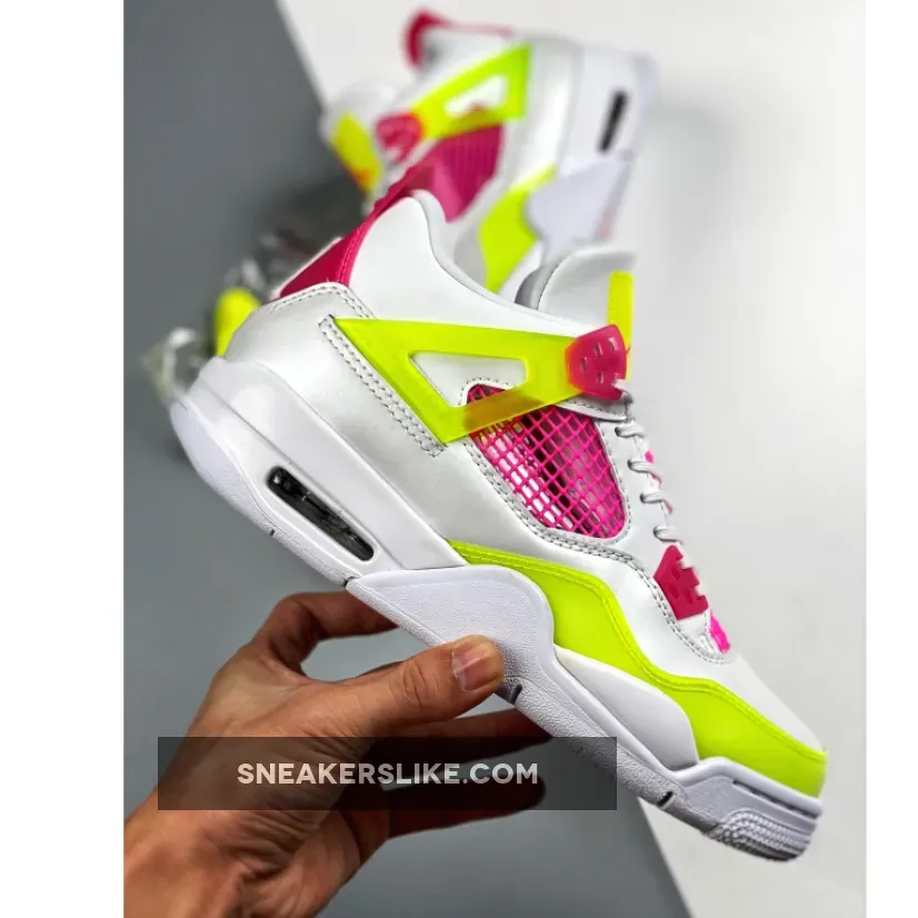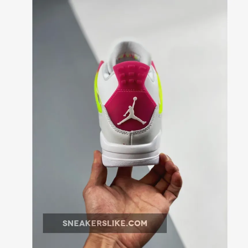 Made for big kids, the Air Jordan 4 Retro GS ‘Lemon Venom’ updates Tinker Hatfield’s 1989 design with candy-bright accents. The white leather upper is treated to increased ventilation, thanks to open quarter panels covered in pink netting. Contrasting pops of Lemon Venom land on the semi-translucent wings, forefoot overlay and tongue tag.
