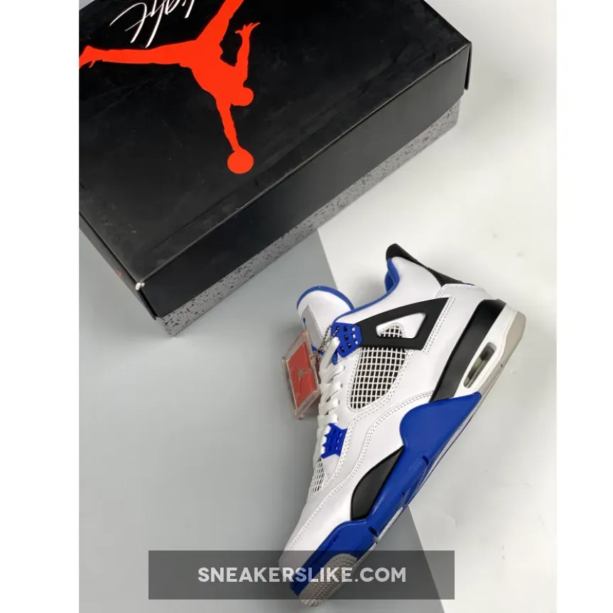 Clean & classic design, love the Game Royal accents ?. Air Jordan 4 Motorsports is a must-cop for any Jordan fan. #AJ4 #Motorsport #Nike ?