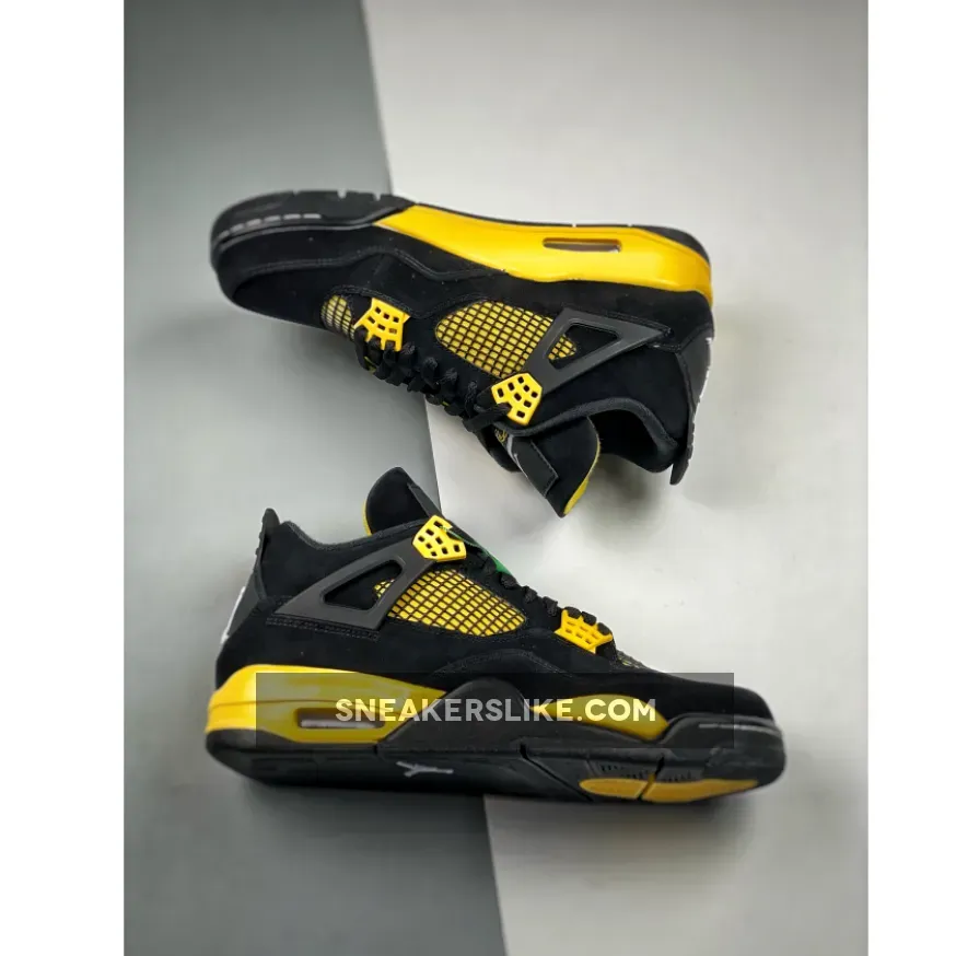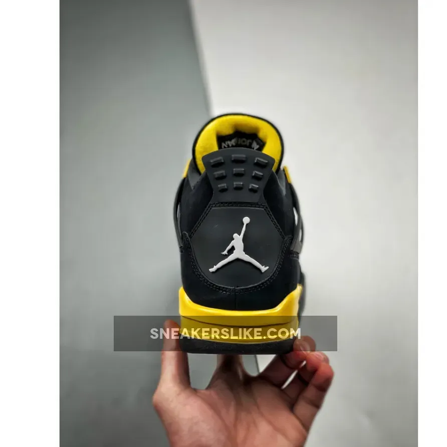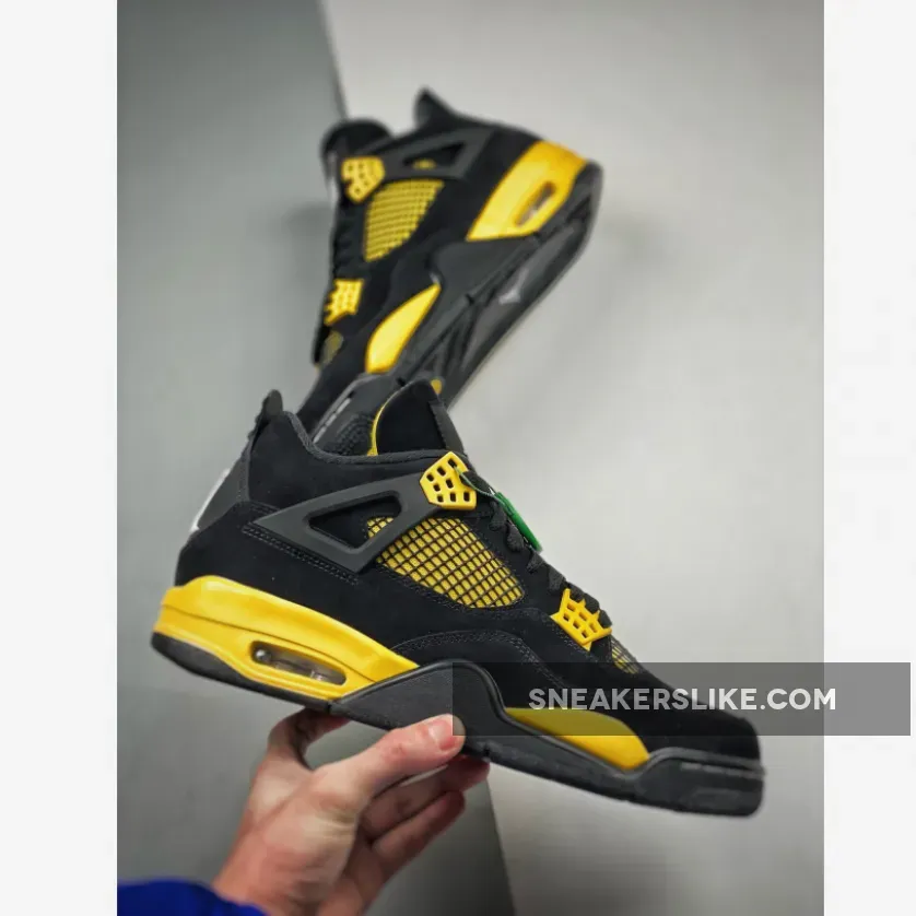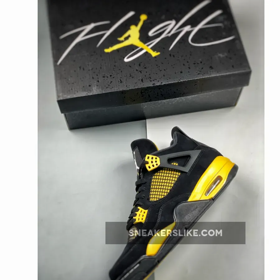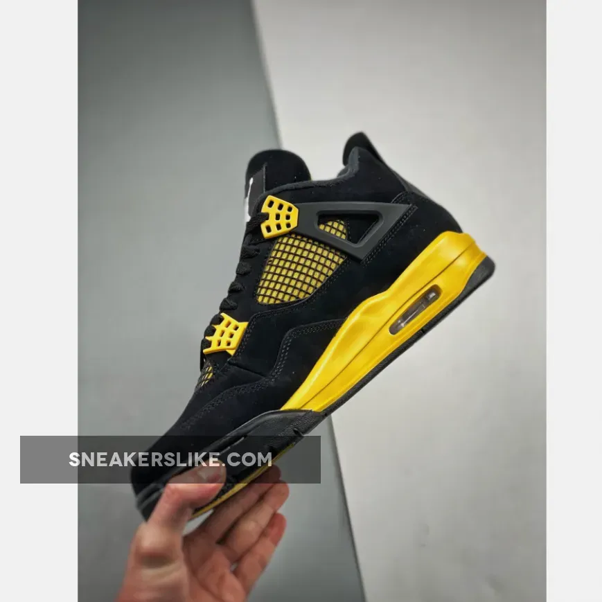 “I’m loving the Air Jordan 4 ‘Thunder’! The black nubuck upper is sturdy & durable. Yellow accents pop nicely. Comfortable fit & great arch support. Worth the $210 price tag”