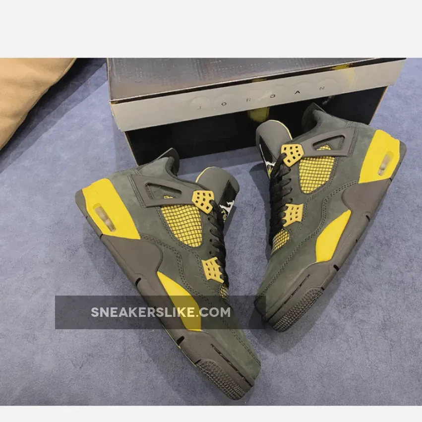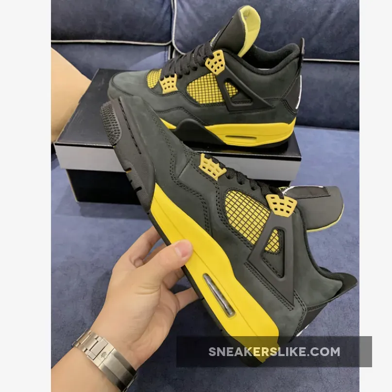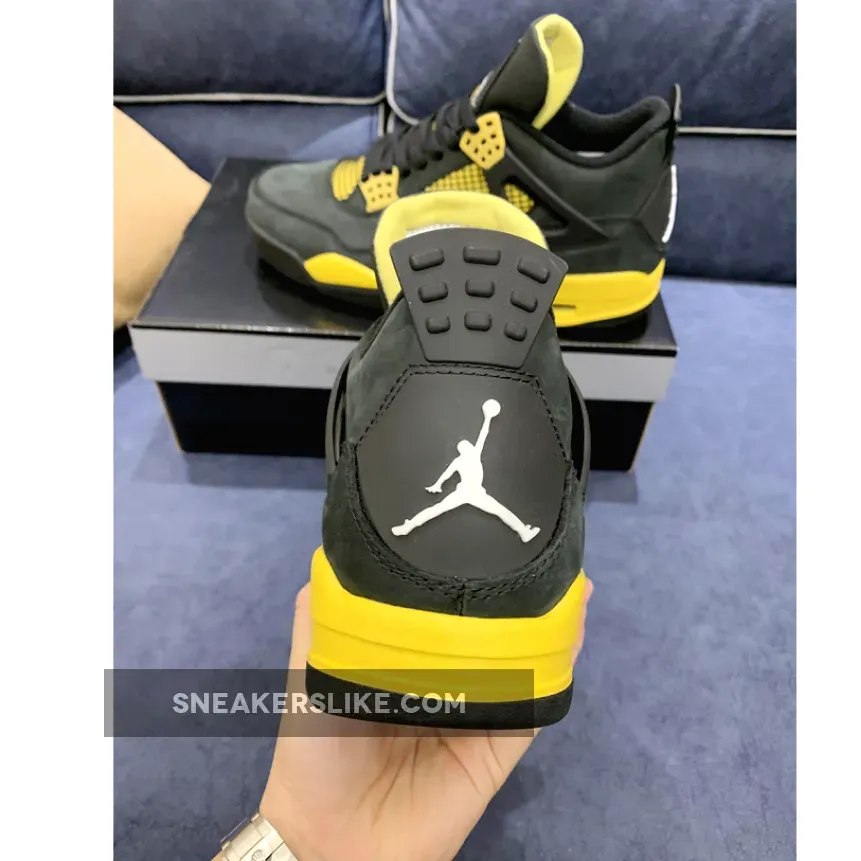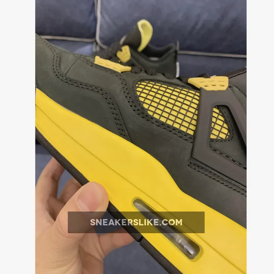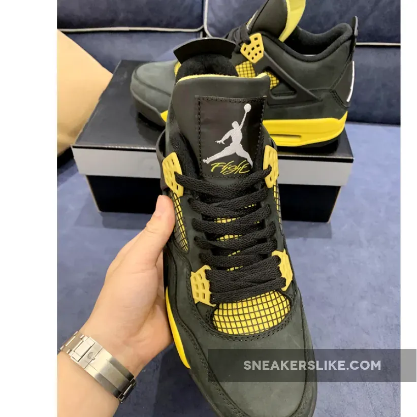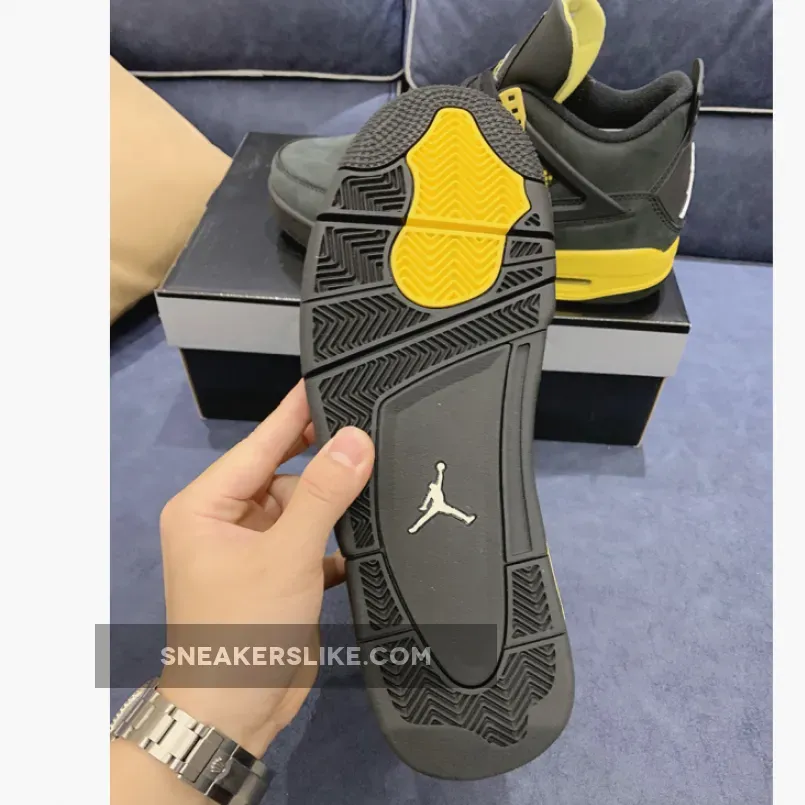 “I’m thoroughly impressed with the Air Jordan 4 ‘Thunder’! The black nubuck upper is sleek & durable, while the vibrant yellow accents add a pop of color. Cushioned midsole provides excellent comfort & support. Performance-wise, it’s top-notch. Highly recommend for sneaker enthusiasts!”