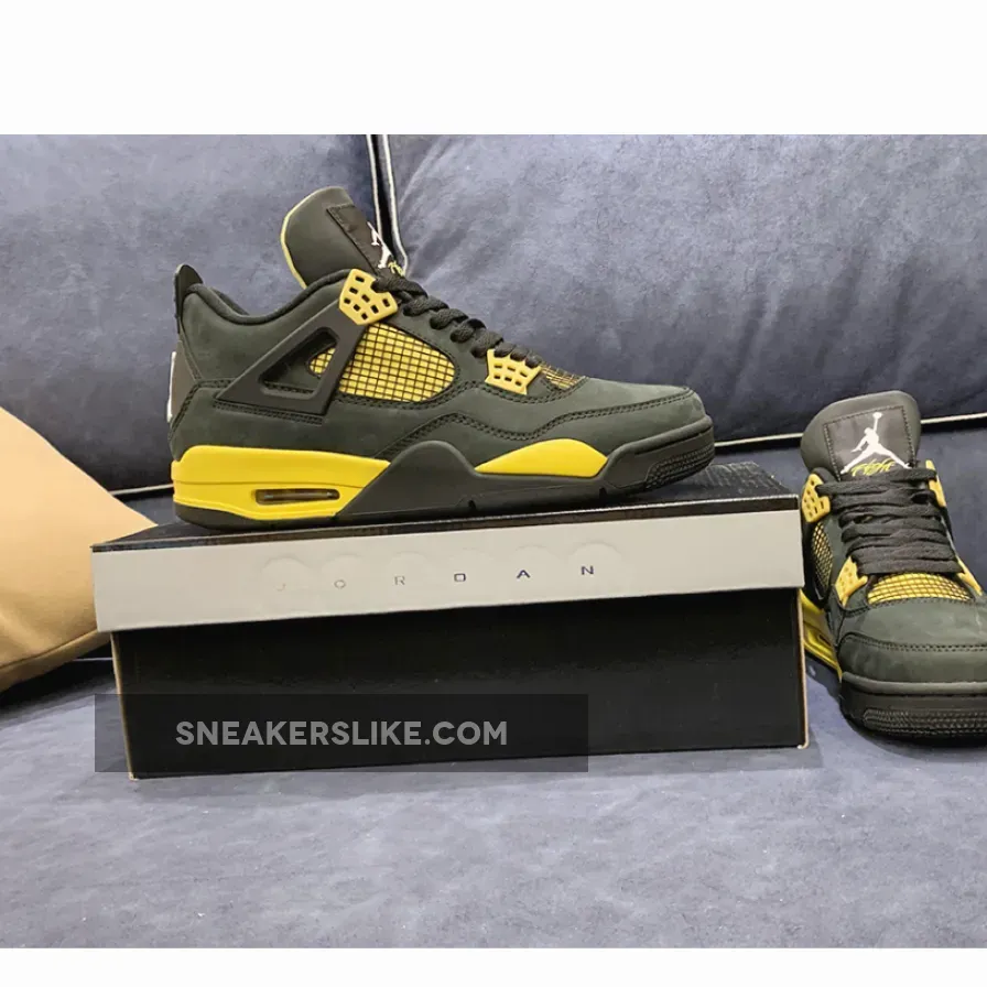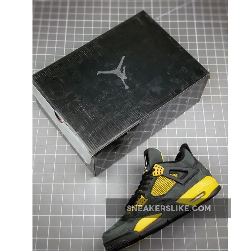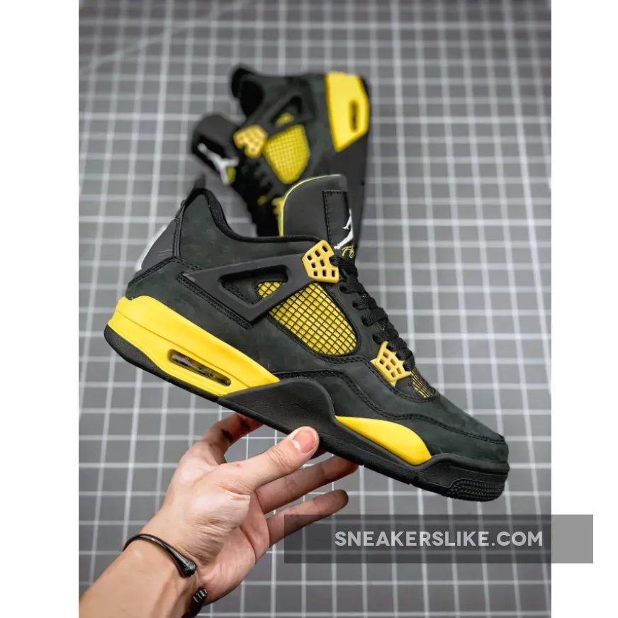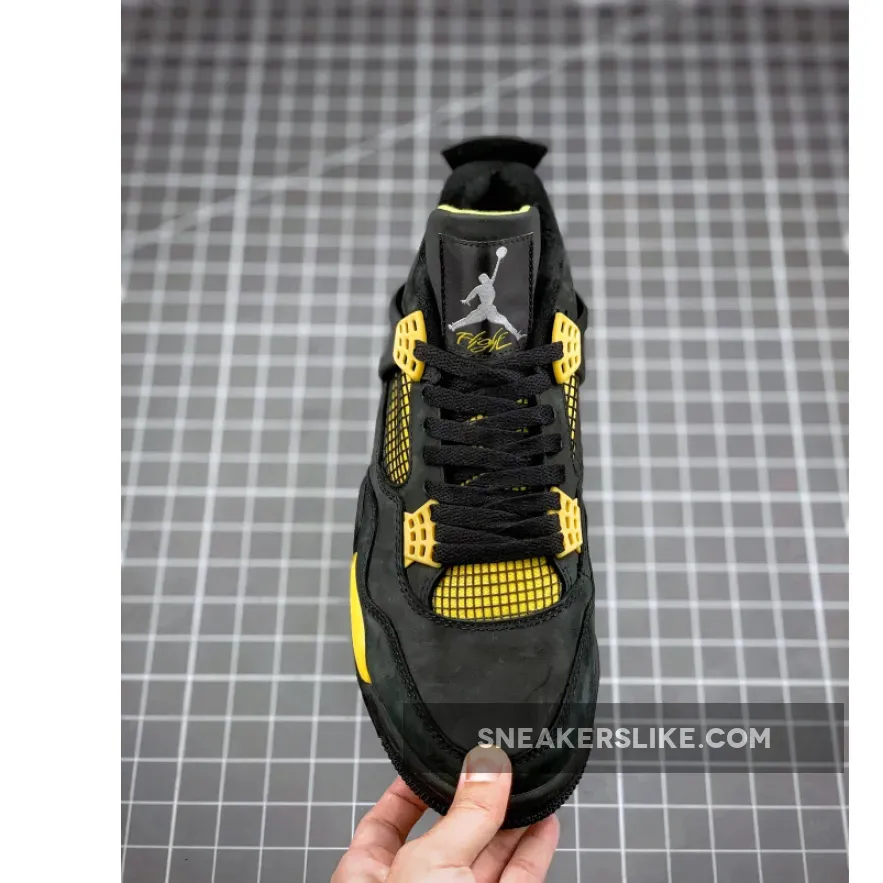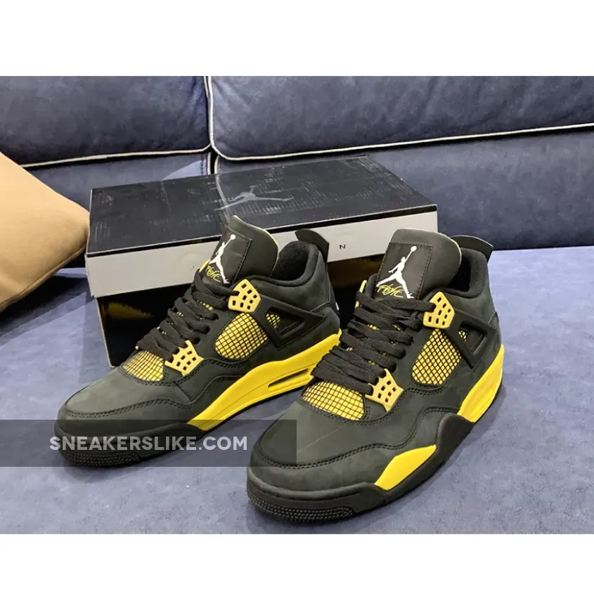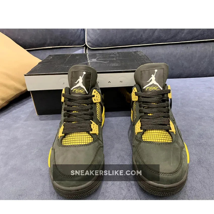 “I’m thoroughly impressed with the Air Jordan 4 ‘Thunder’! The black nubuck upper is sleek & durable, while the vibrant yellow accents add a pop of color. Cushioned midsole provides excellent comfort & support. Performance-wise, it’s top-notch. Highly recommend for sneaker enthusiasts!”
