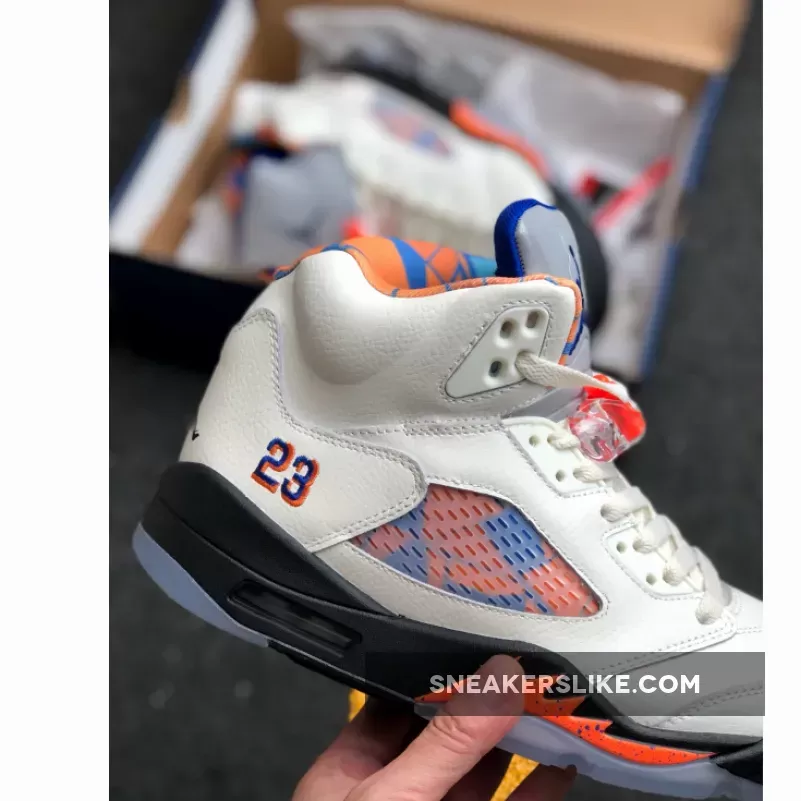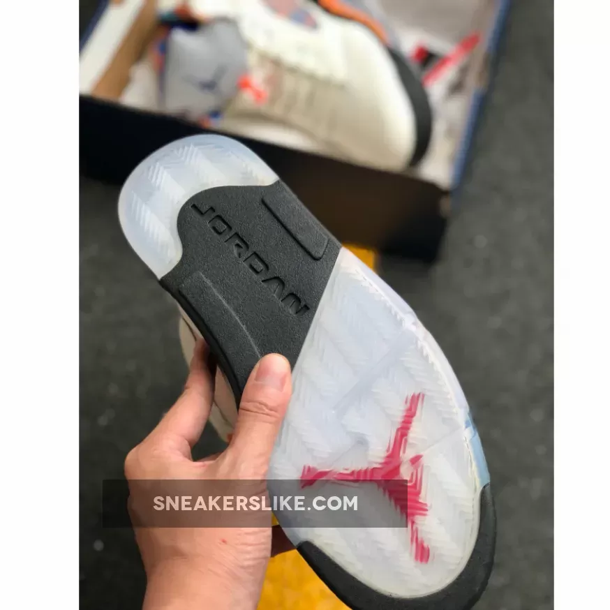 The Air Jordan 5 Retro “Orange Peel,’ aka ‘The International Flight,’ is a tribute to Michael Jordan’s impact on the popularity of basketball around the world. The colorway was specifically inspired by the blue and orange uniforms that Jordan wore for an exhibition game in Barcelona in August 1990 for a Nike Europe promotional tour. The design features a Sail tumbled leather upper accented by a blue and orange pattern based on Barcelona’s iconic street art, visible on the lining and through the quarter panel mesh.