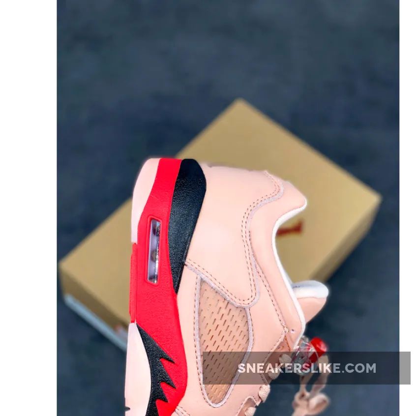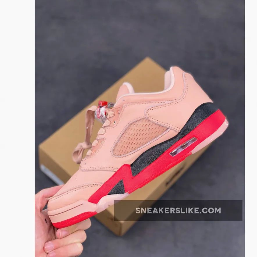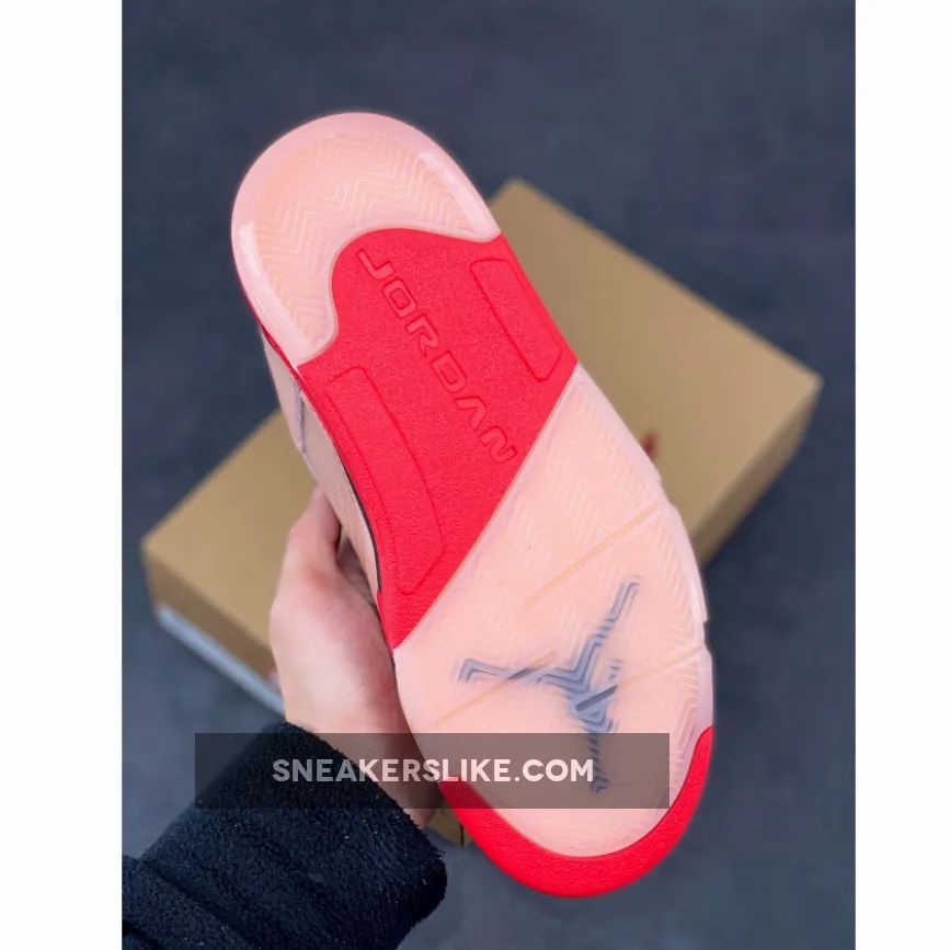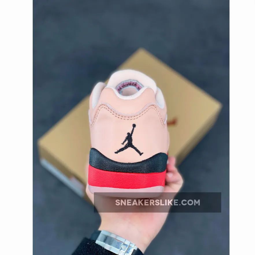 Dressed in an Arctic Orange, Siren Red, and Black color scheme. This low-top Air Jordan 5 features a tonal upper with matching liners, tongues, and laces highlighted with Pink contrasting accents on the tongue branding, lace lock, midsole, and outsole.