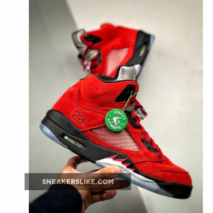 There is certainly nothing wrong with adding another pair of Jordans to your collection, so keep reading on as we reveal the hottest details of the Jordan 5 Raging Bull Varsity Red. Official images of the brand new AJ5 have been sent to us by the Jordan Brand and Nike for a closer look. Michael Jordan’s fifth signature basketball shoe is undeniably one of the most fan-favoured sneakers released. Designed by Tinker Hatfield back in 1990, its design takes heavy inspiration from WWII fighter jets to represent Michael Jordan’s biting style on the court. The Raging Bull Air Jordan 5 first released in 2009 and was one of the most legendary Jordan colourways. The good news is that it’s now returning this year and we just can’t wait to get our hands on a pair.Dressed in Varsity Red overlays from heel to toe, super smooth suede fabric coats the panels for a luxury sneaker aesthetic. Elsewhere, a translucent netting is as present ever midfoot complemented with MJ’s signature jersey number “23” completes the legendary design.The Nike Air Jordan 5 Retro Raging Bull should not be missed if you’re a die-hard Jordan fan.