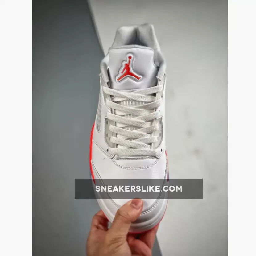 the AJ 5 is anticipated to have a color palette featuring football gray, dazzling orange, and pine green. The football gray hue dominates the majority of the pattern on the top, which is made of premium leather.