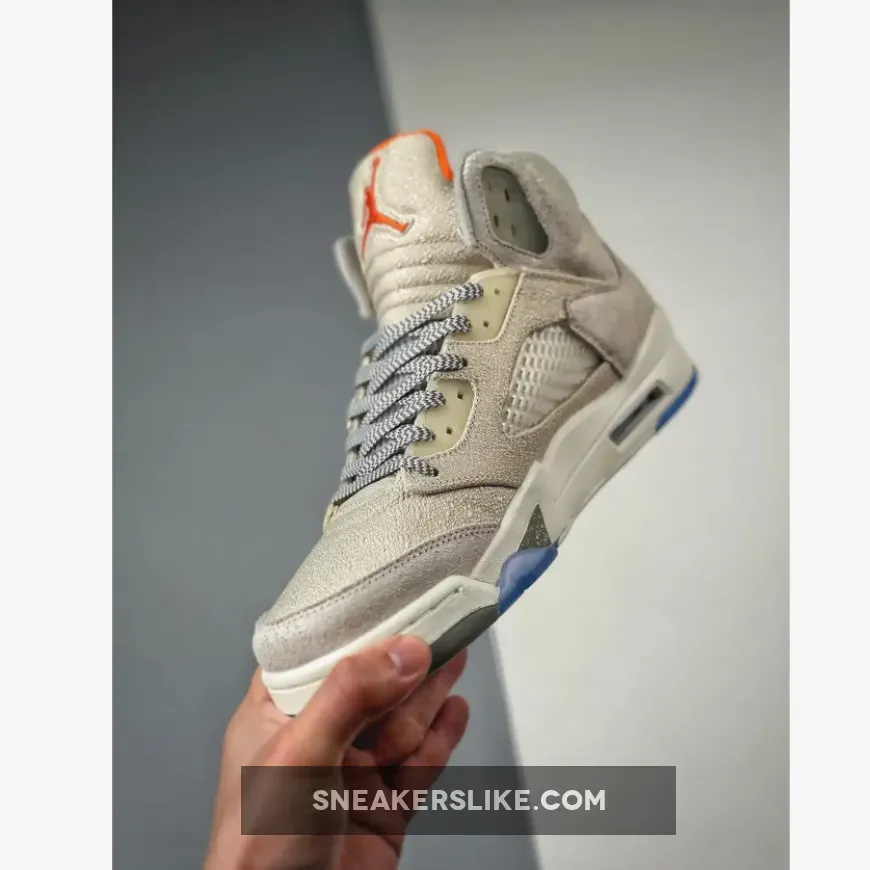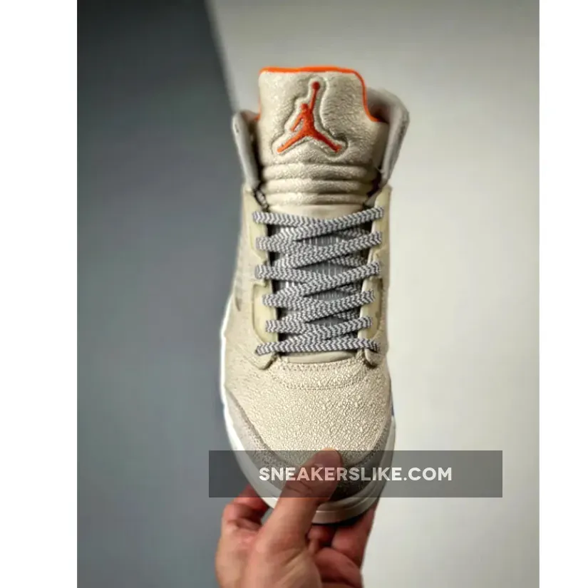 the Air Jordan 5 SE “Craft,” a “Light Orewood Brown/Safety Orange-Flat Pewter-Sail” color composition offers a mostly monochromatic presentation of the sneaker.