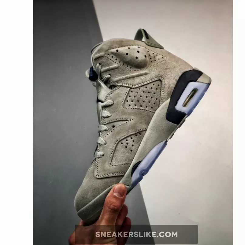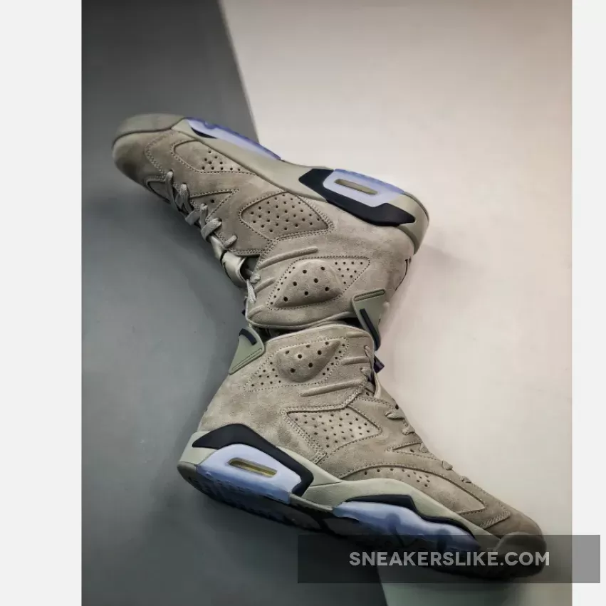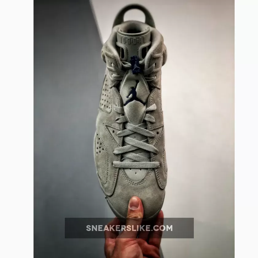Sleek elements take the vanguard in the Air Jordan 6 Georgetown. This understated pair’s colourway takes cues from the palette of Patrick Ewing-led Georgetown Hoyas. Grey takes the centre stage as it dominates the perforated suede upper and the matching laces and tongue, while navy blue appears sparingly in the lace lock, heel tab, and midsole. A true versatile shoe, this design will match well with many looks no matter the season.