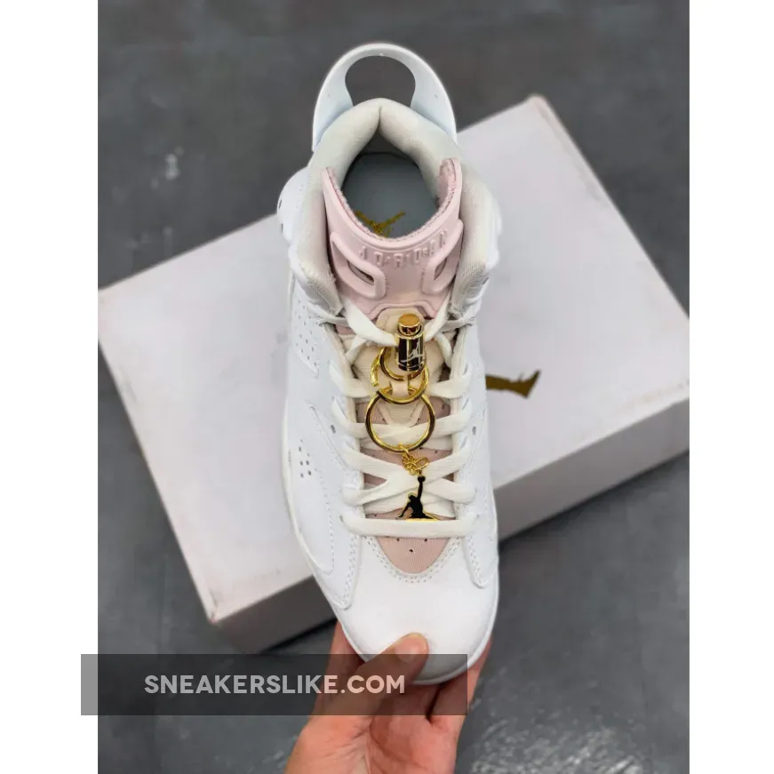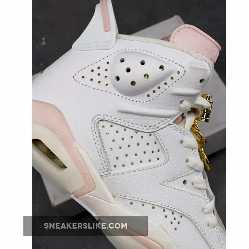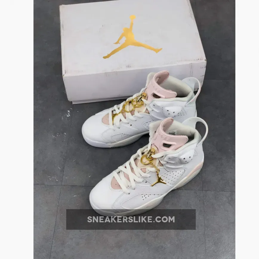 The Swoosh team and Jordan Brand have released some of the most stunning shoes we’ve seen to date, notably Michael Jordan’s sixth basketball trainers that has remained a relevant style on and off the court since its inaugural in 1991. Its latest iteration is titled the Air Jordan 6 Retro Gold Hoops, and we’ve got a closer look at the official images right here so read on as we tell you all about its details.Showcasing its standard AJ6 build, the pair indulges in tumbled leather panelling from heel to toe, coating the perforated segmented panels across the quarters too.As far as colour arrangement goes, it opts for a white, sail, metallic gold, and muted pink tones that give it an eye-pleasing touch. What also sets this apart from the standard Air Jordan 6 is the set of interlinked gold hoops attached to the lace toggles forefoot.Will you be adding the Air Jordan 6 to your rotation? Keep it locked in right here at Our Store Supplier as we’ll be the first to notify you of all the latest Nike releases.