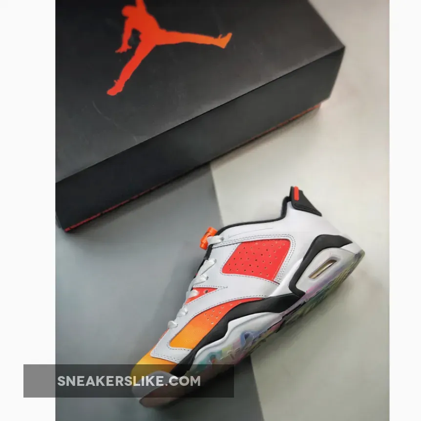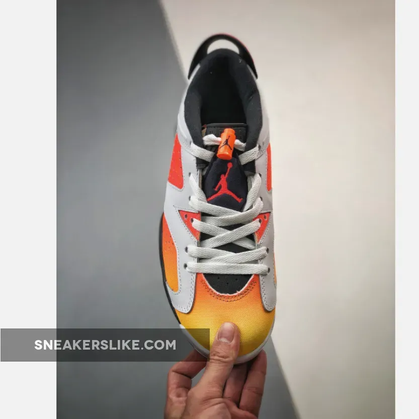 The Air Jordan 6 Low Dongdan is part of a larger Dongdan collection inspired by the annual summer Chinese streetball tournament. It comes dressed in a White, Black, Tour yellow, and Total Orange color scheme. Opting for a head-turning aesthetic, details include the Orange and Red gradient motif symbolizing the afterglow of the setting sun shining on the stadium. Finishing details include the “Xiazhan Dongdan” LOGO that highlights the identity and interprets the way of basketball here with the colors of Dongdan.