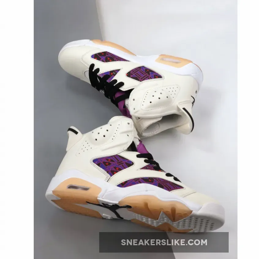 The Jordan 6 Quai 54 Purple is the latest release from Jordan Brand and Nike that’s set to honour the annual basketball tournament that takes place in Paris. Following on from last month’s Jordan 6 Quai that showcases team orange and total orange touches, this pair instead opts for purple accents across the leather upper that add a Parisian twist to the color palettes.Crafted from leather and synthetics, the Air Jordan logo can be found embossed onto the tongue for an instantly recognisable look, while the Nike Air logo is conveniently placed on the heel tab of one shoe. The other shoe showcases the logo of the annual streetball tournament, signifying that these are indeed a limited edition release. The graphic patterns across the sides of each shoe make these one of the louder Nike Air Jordan pairs, perfect for turning a few heads on the street. The combination of the rich design heritage and new colorway makes these a must-have for any serious Jordan collector.