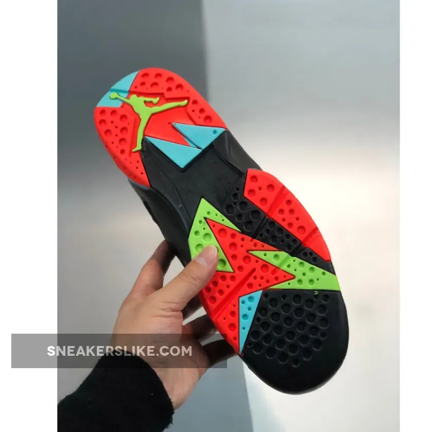 Continuing to celebrate the 23rd Anniversary of the Air Jordan 7, as well as the Looney Tunes Collection that will be inspired by the classic Warner Bros./Space Jam characters. Marvin The Martian was an outer-space villain of Bugs Bunny, which makes sense to release these as a follow-up to the Air Jordan 7 “Hare” colorway. The actual “Marvin The Martian” Air Jordan 7 to celebrate the 30th Anniversary of Air Jordan is dressed in a Black leather upper with Red detailing, Purple hints, and a Neon Green pull tab on the back heel to add to the Hare Jordan Collection.